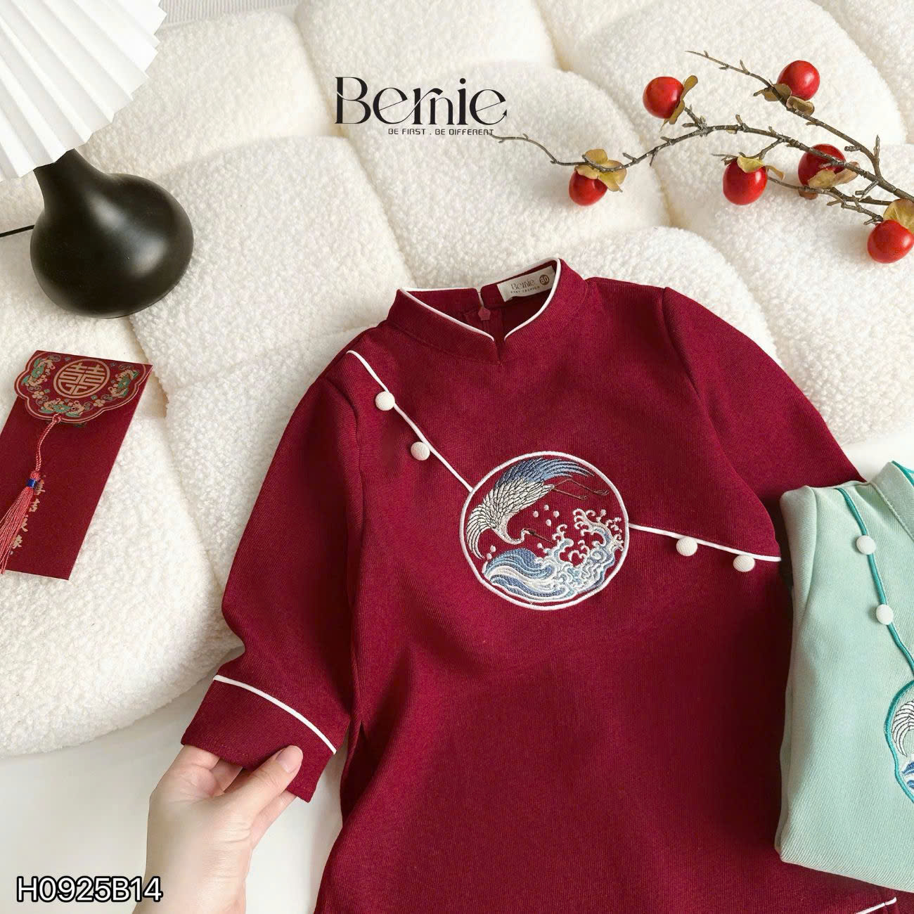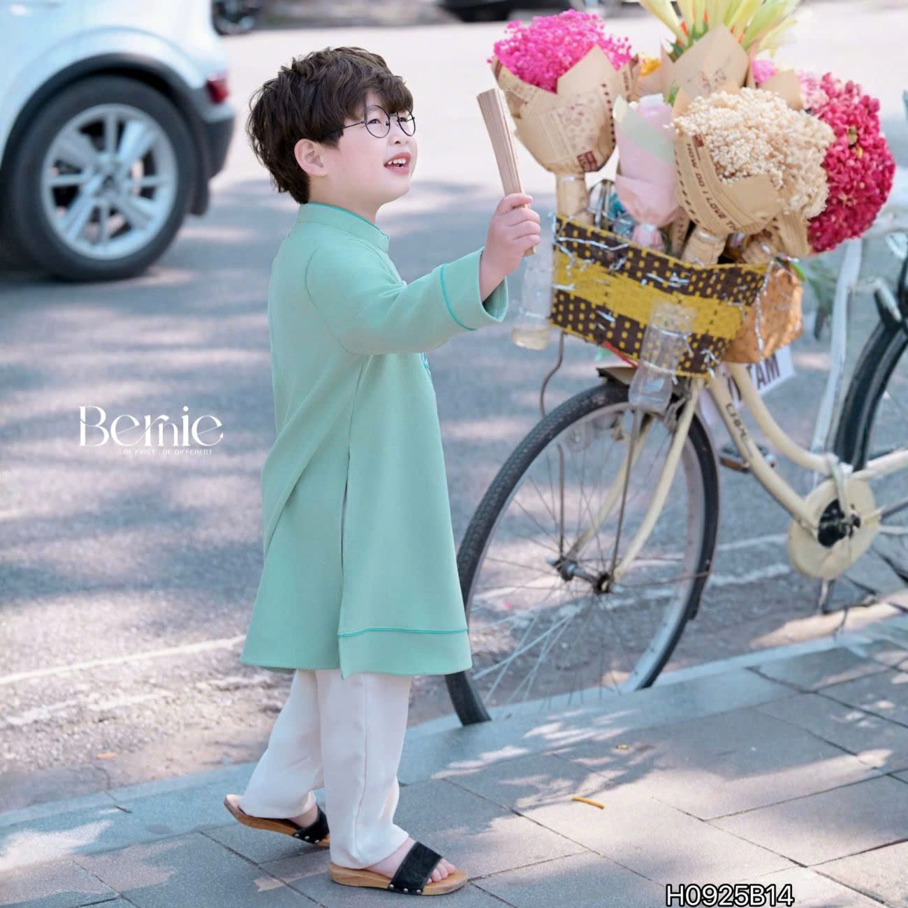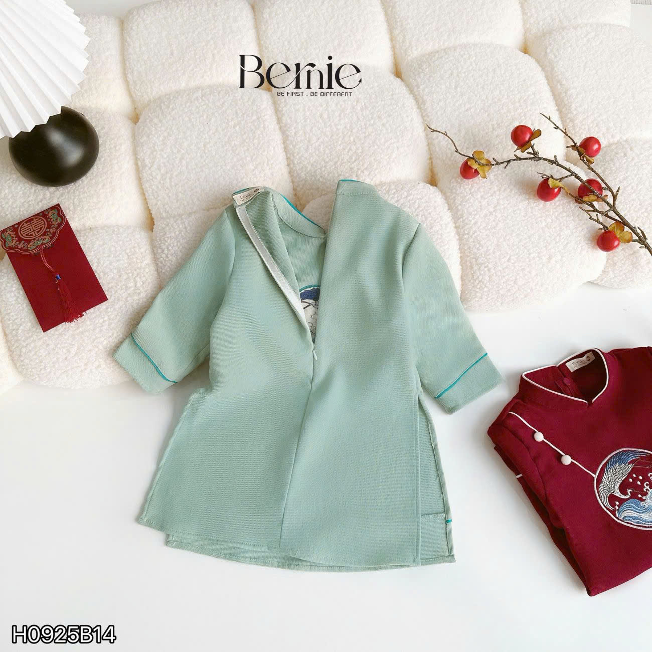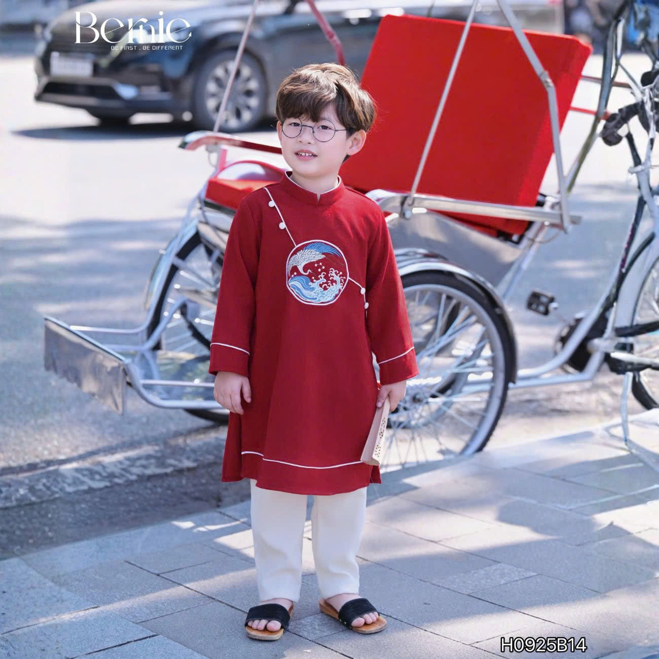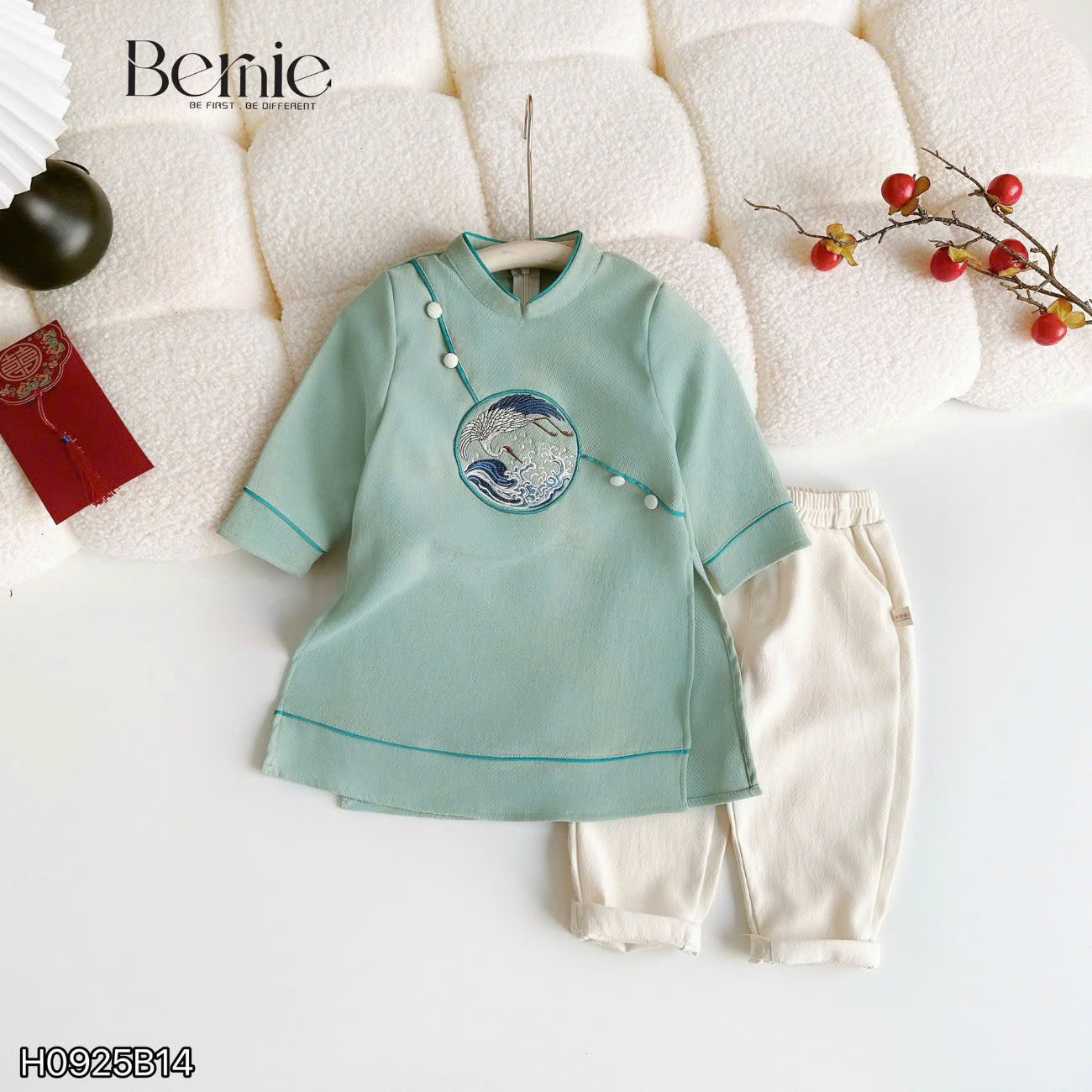 - Tên sản phẩm: Set áo dài cách tân Hạc vũ cho bé trai mặc tết chất nhung tăm chéo mềm mịn size 9 đến 25kg BERNIE H0925B14