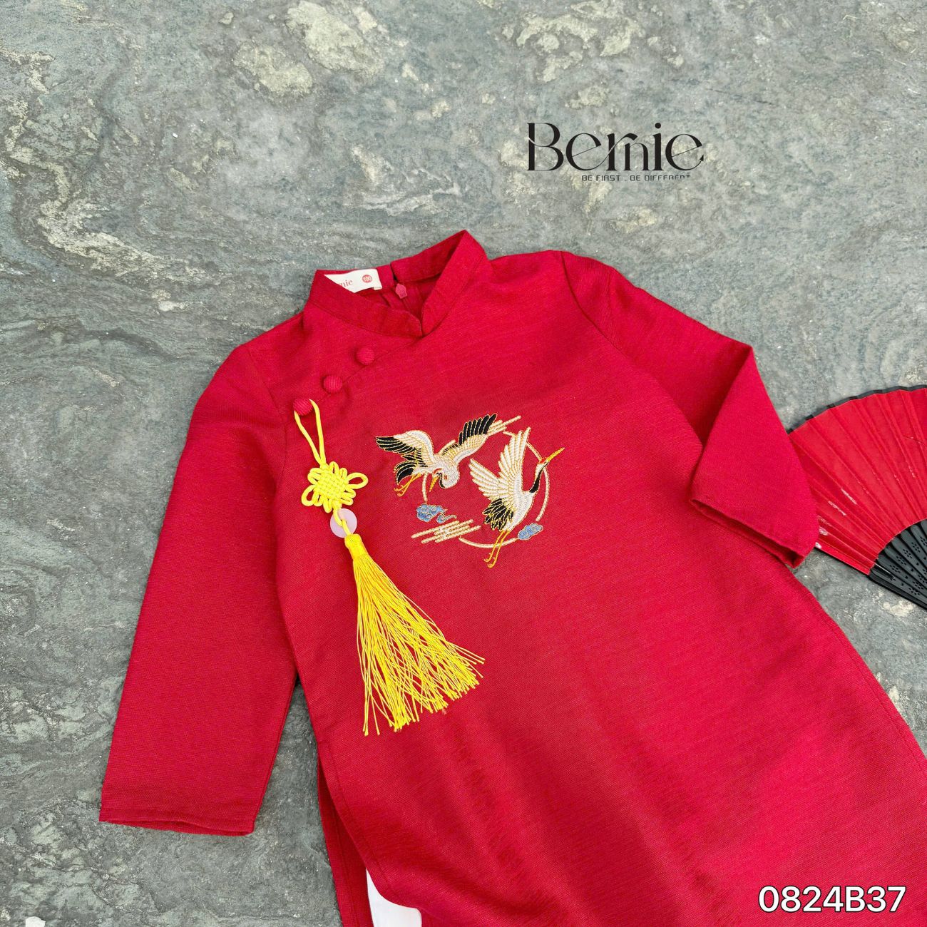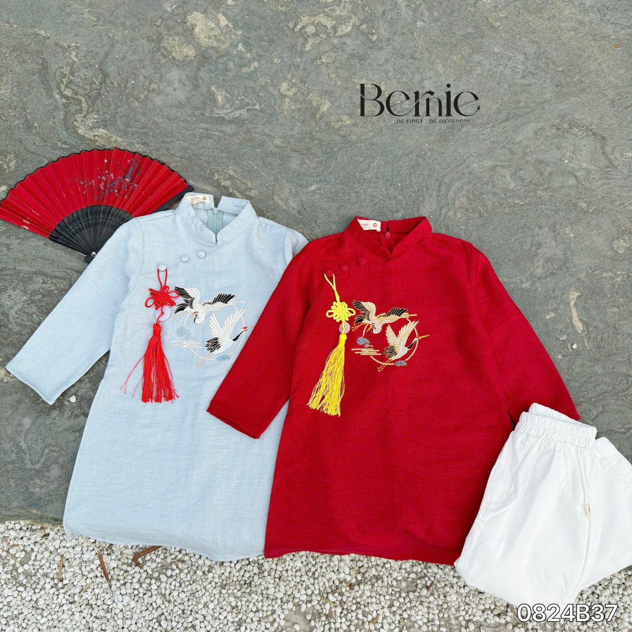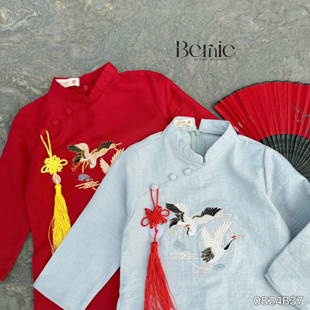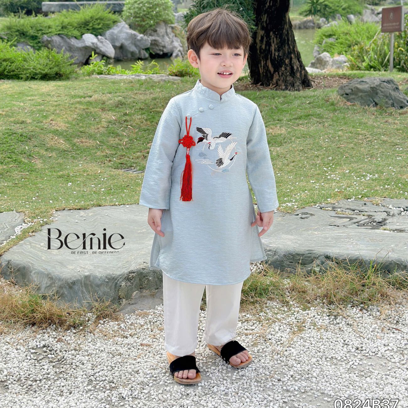 Tên sản phẩm: Áo dài cách tân bé trai mặc tết chất tafta thêu hạc màu xanh màu đỏ cho bé trai 10 đến 25kg BERNIE 0824B37