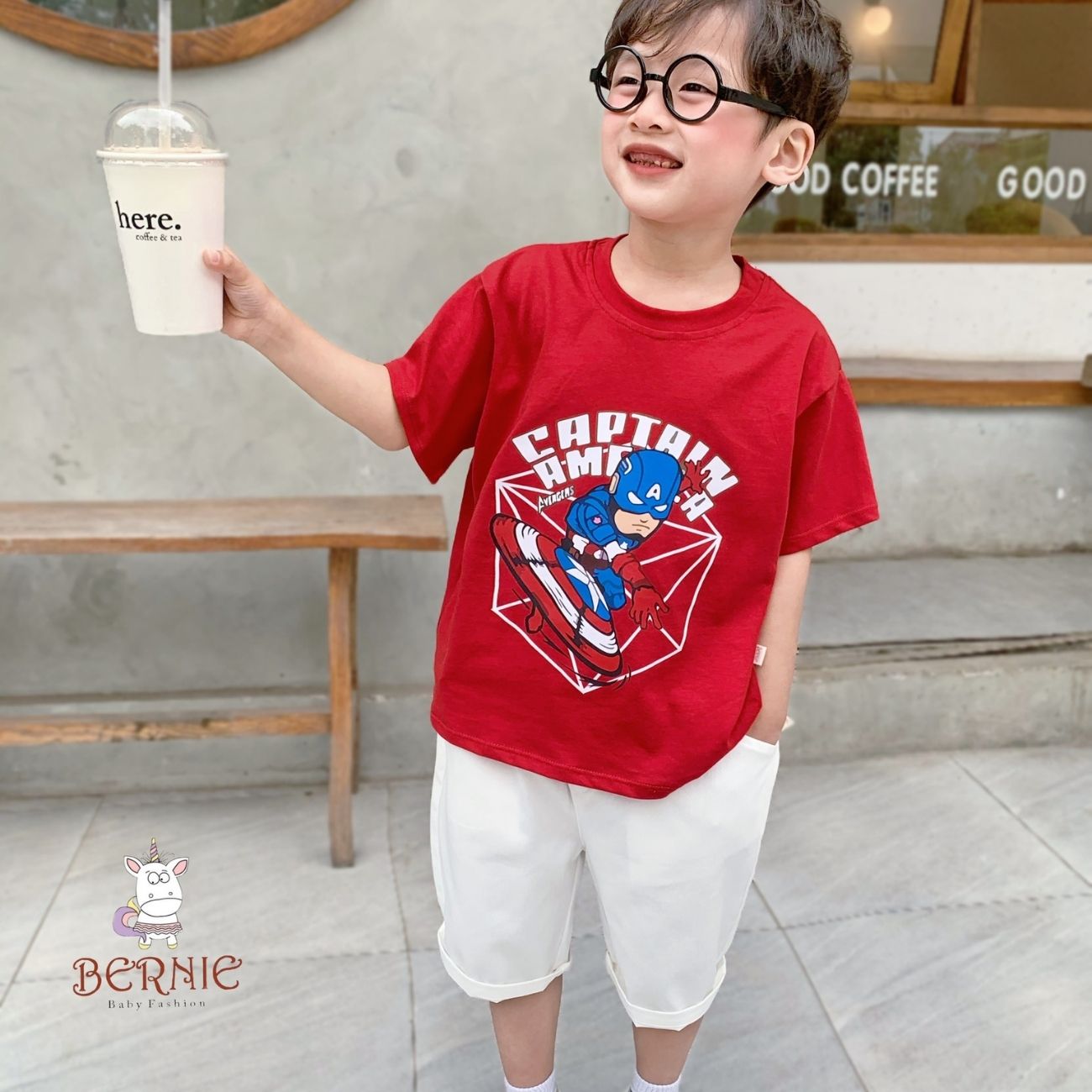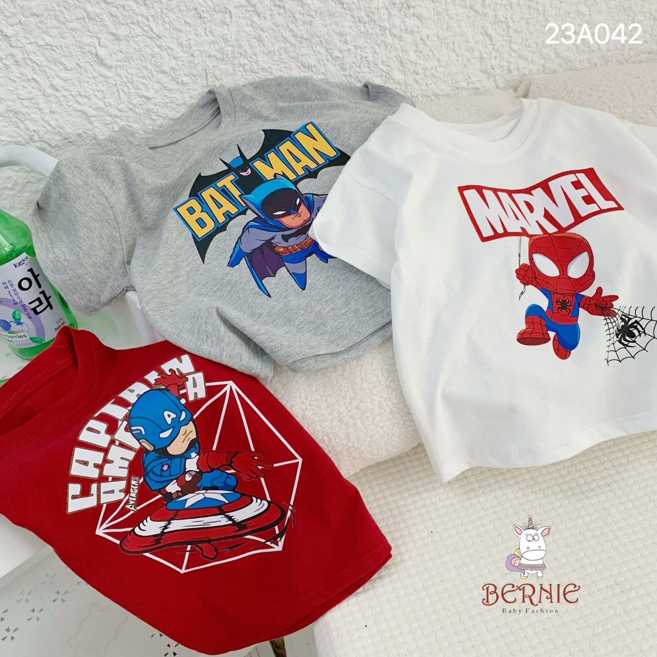 Tên sản phẩm: áo phông cộc tay siêu nhân Marvel, bat man, người nhện, caption áo thun siêu nhân bé trai 1 đến 7 tuổi BERNIE