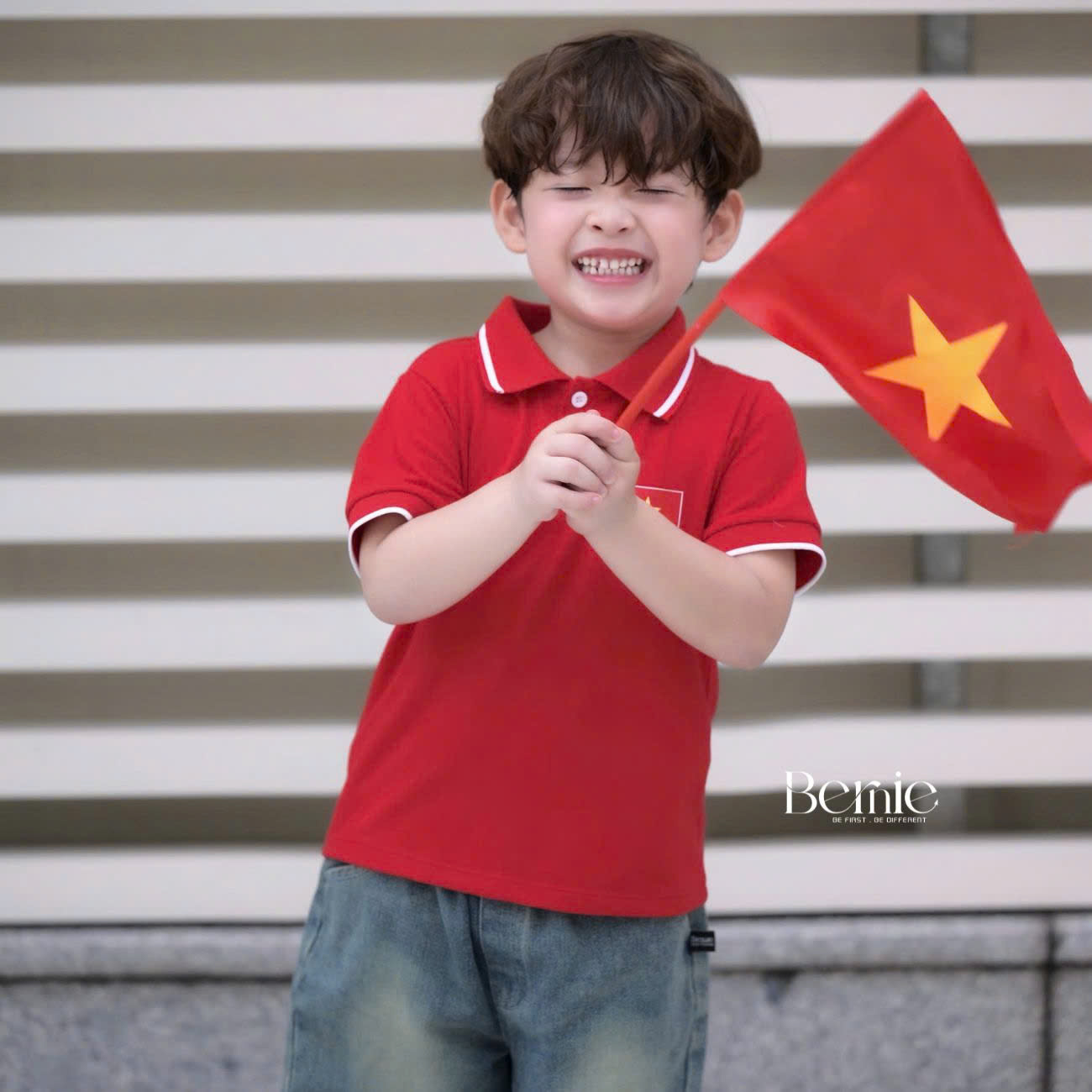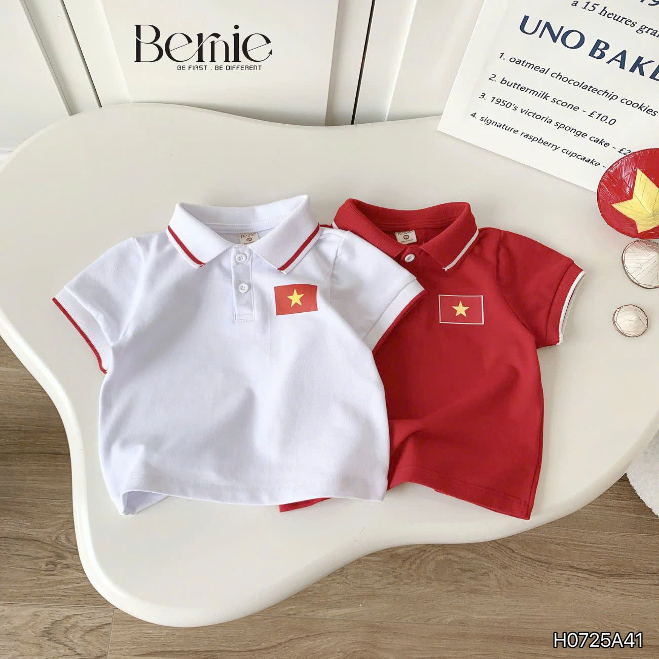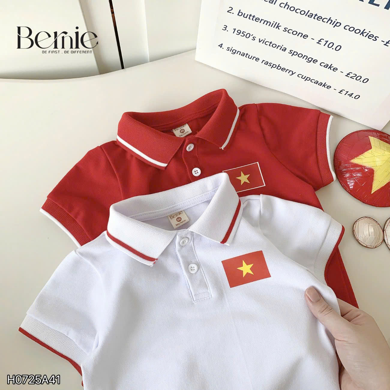 - Tên sản phẩm: Áo thun polo Lá cờ đỏ sao vàng em bé Việt Nam tay ngắn unisex bé trai bé gái 9-28kg BERNIE H0725A41
