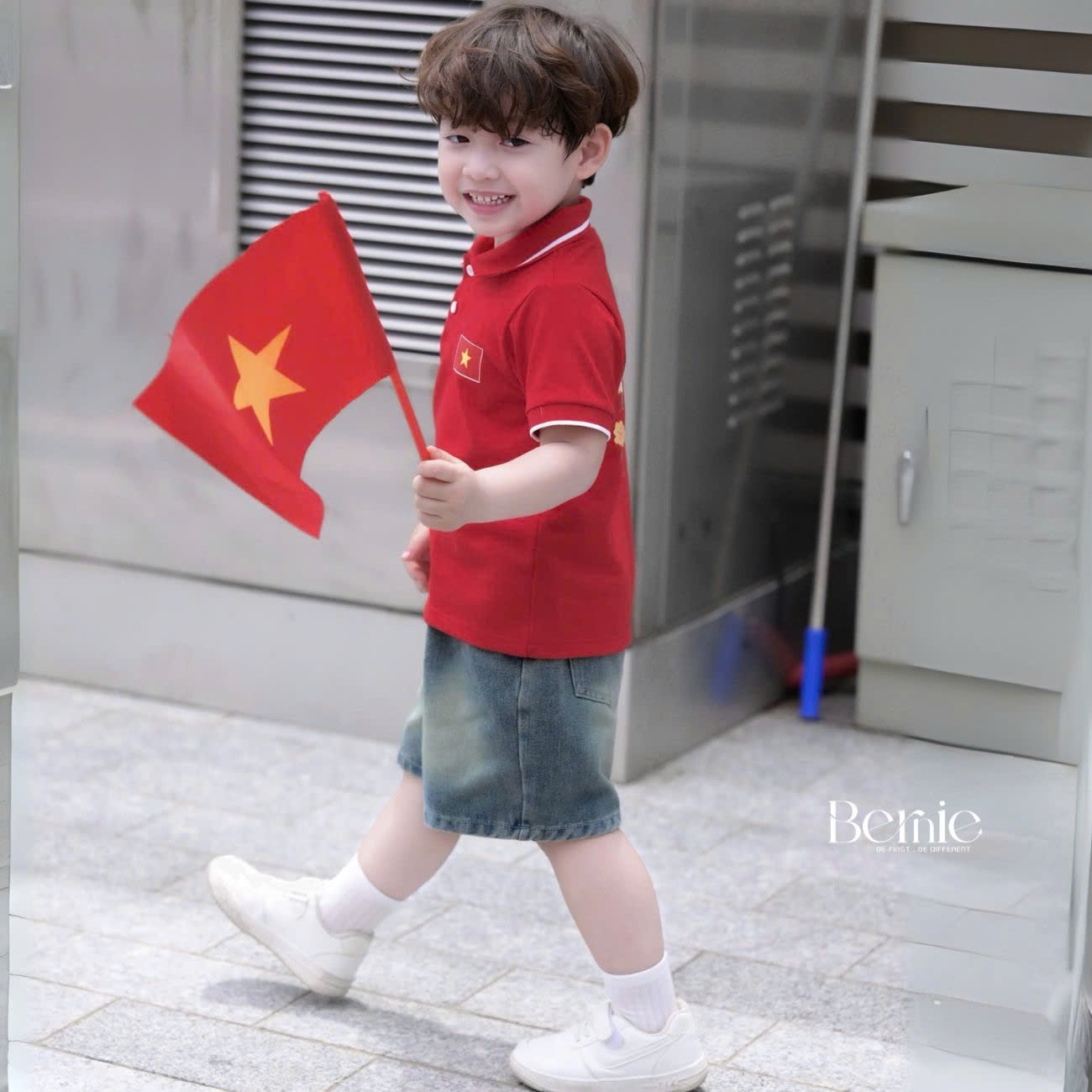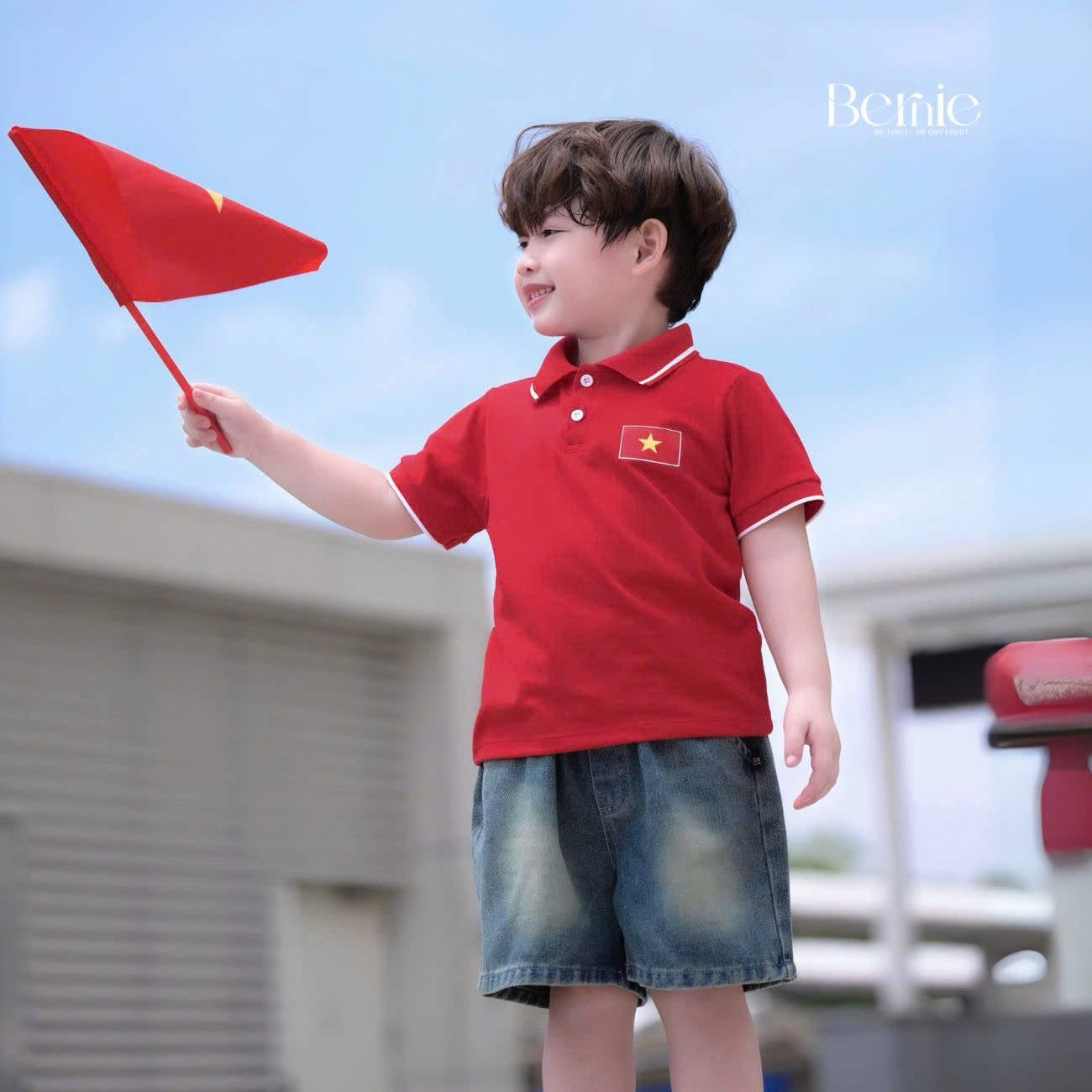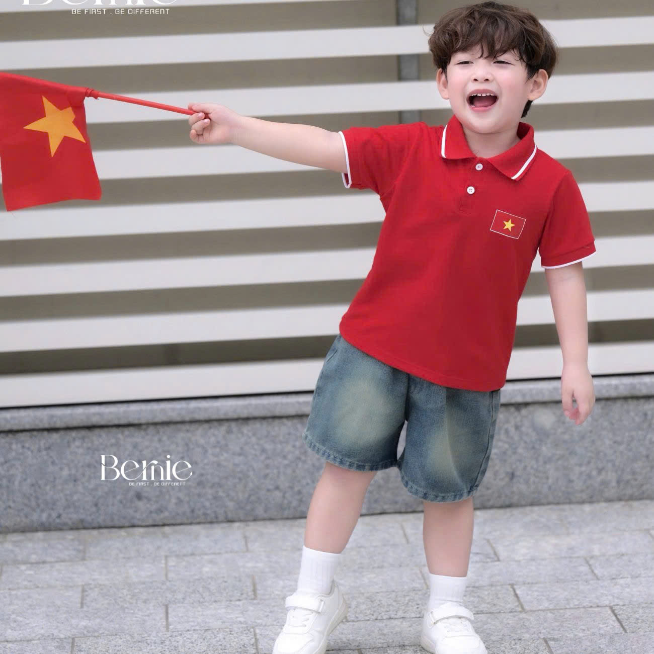 - Tên sản phẩm: Áo thun polo Lá cờ đỏ sao vàng em bé Việt Nam tay ngắn unisex bé trai bé gái 9-28kg BERNIE H0725A41