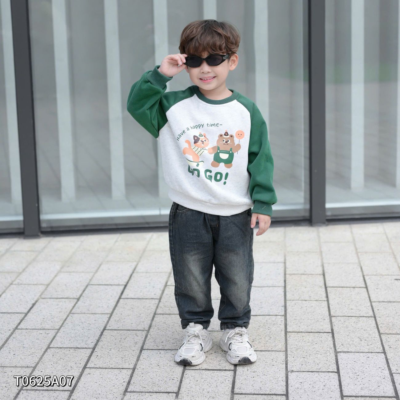 Áo thun Sweater Brit tay dài raplang phối màu họa tiết hoạt hình cho bé trai bé gái 1 đến 7 tuổi BERNIE T0625A07
