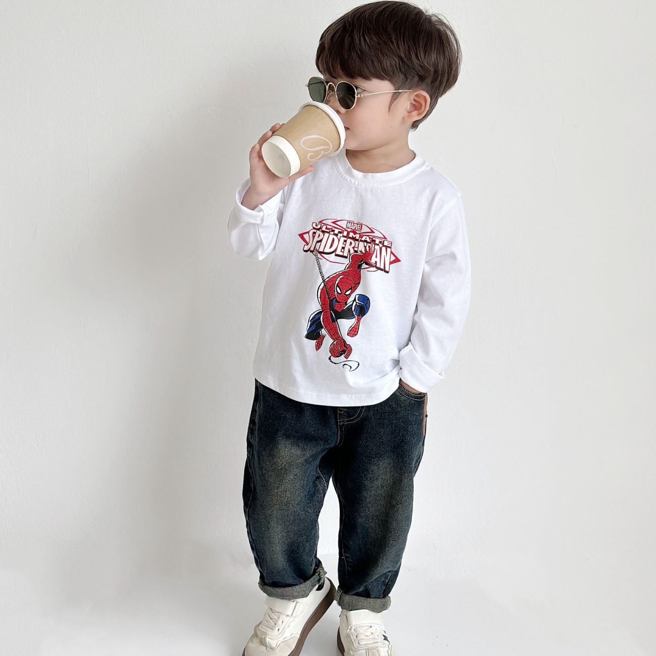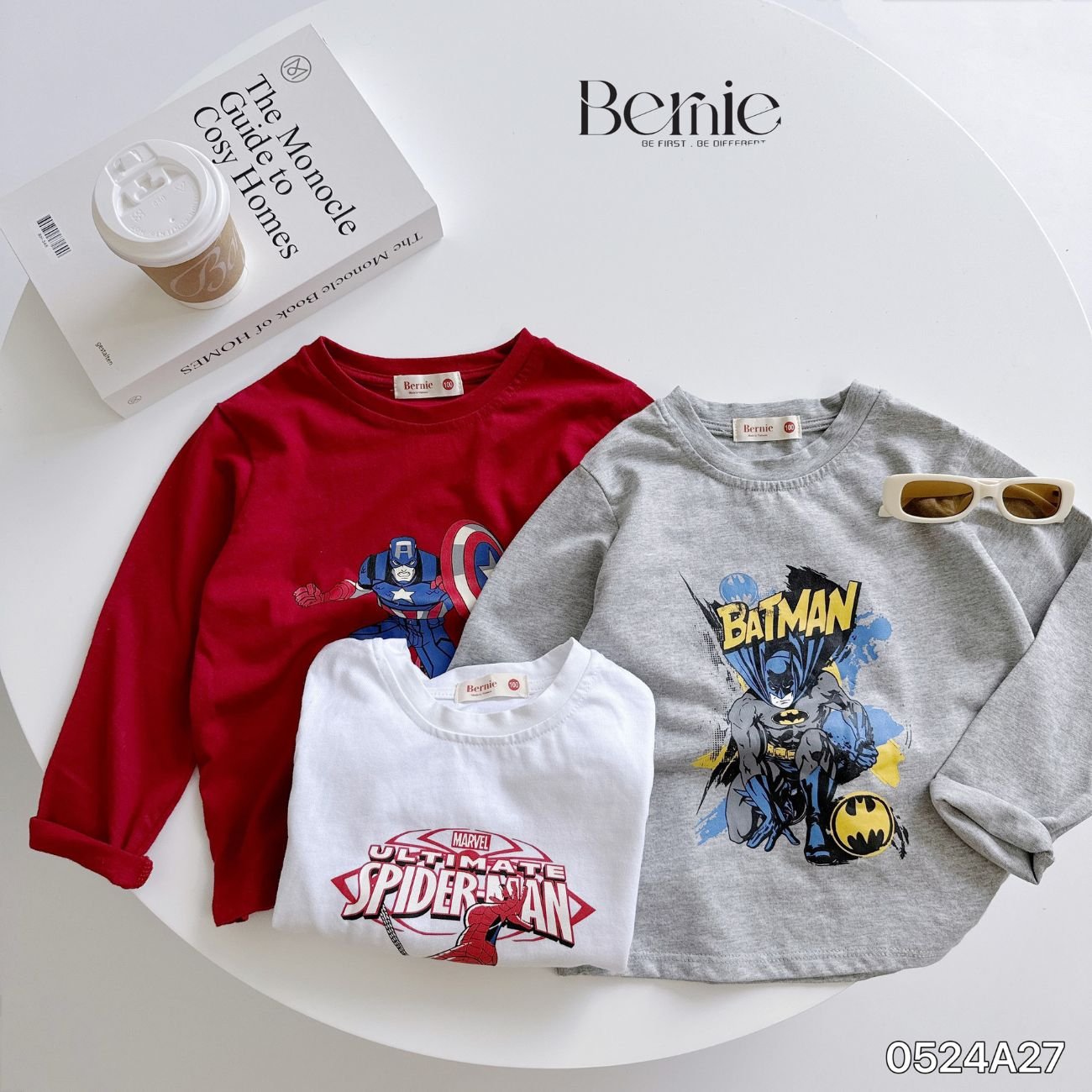 Áo phông dài tay họa tiết siêu nhân người nhện cho bé trai chất thun cotton mềm mại 1 đến 7 tuổi BERNIE 0524A27