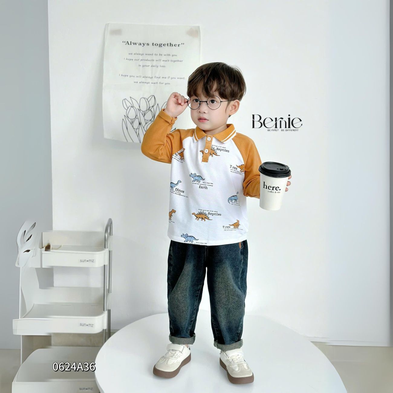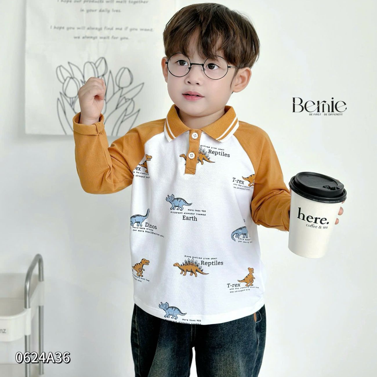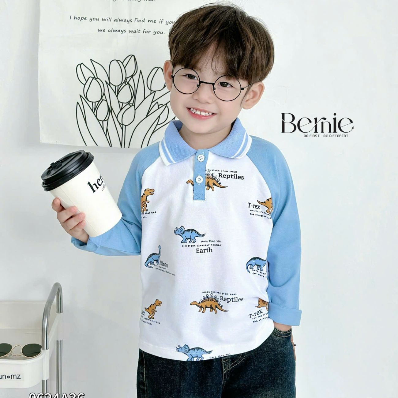 Áo thun áo polo tay dài họa tiết khủng long nhiều màu cho bé trai 1 đến 7 tuổi BERNIE 0624A36