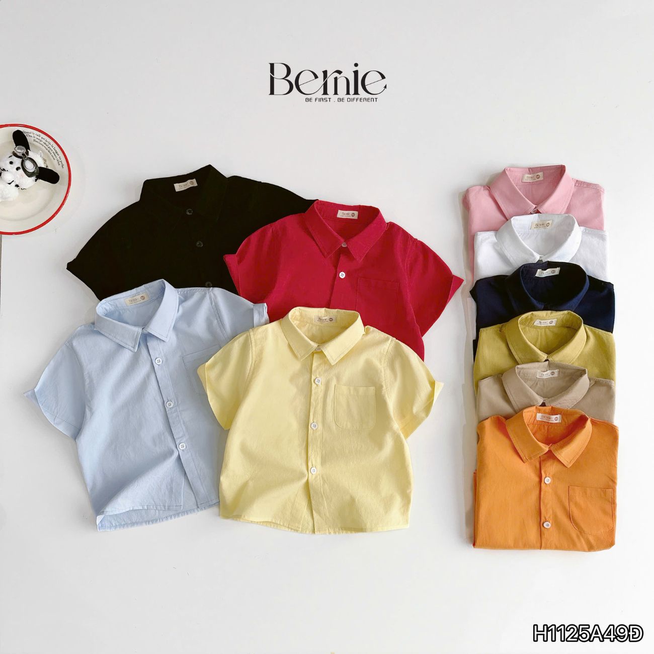Áo sơ mi tay ngắn Basic nhiều màu unisex cho bé trai bé gái size 9kg tới 25kg BERNIE H1125A49Đ