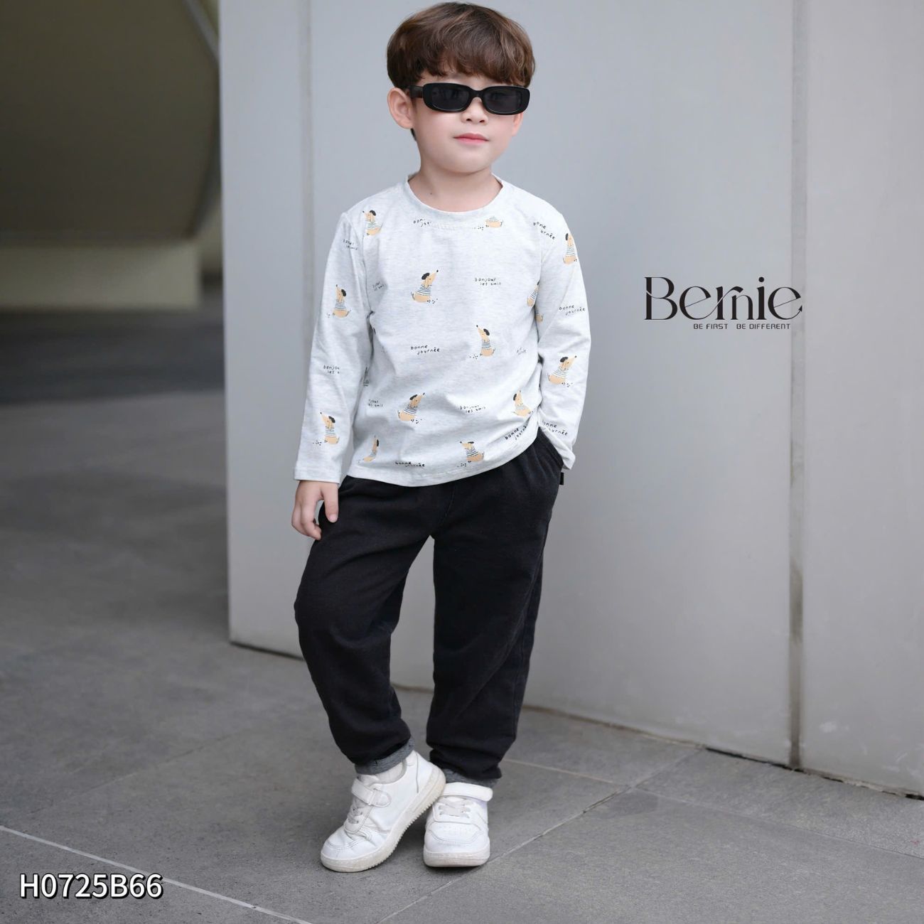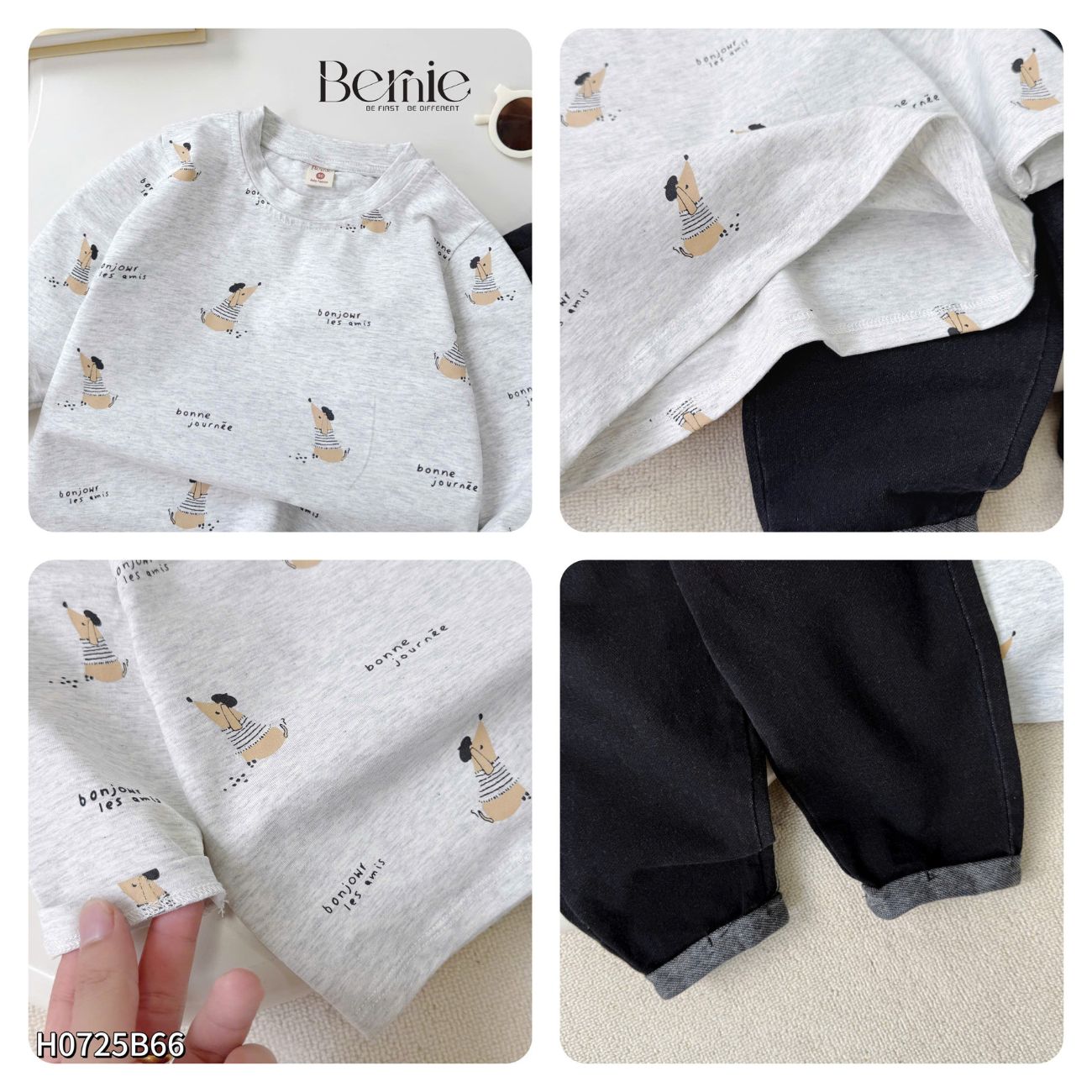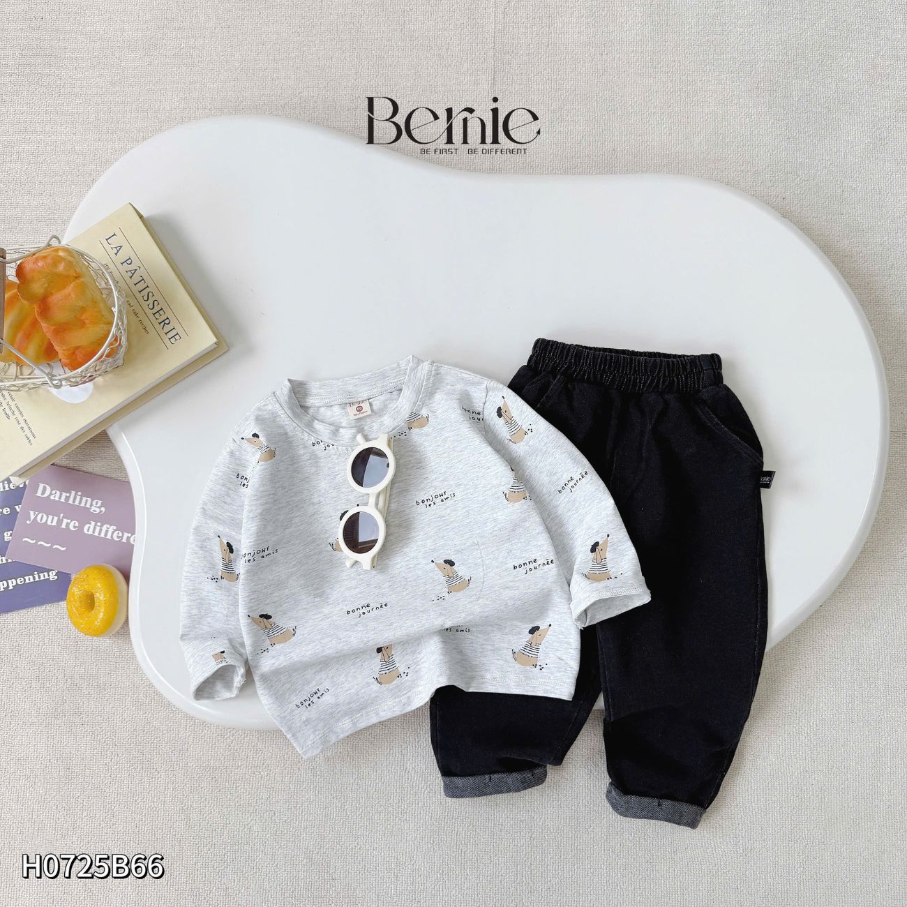 Set bộ thun cho bé trai tay dài áo thun họa tiết in cún hoạt hình quần dài da cá size 9 tới 28kg BERNIE H0725B66