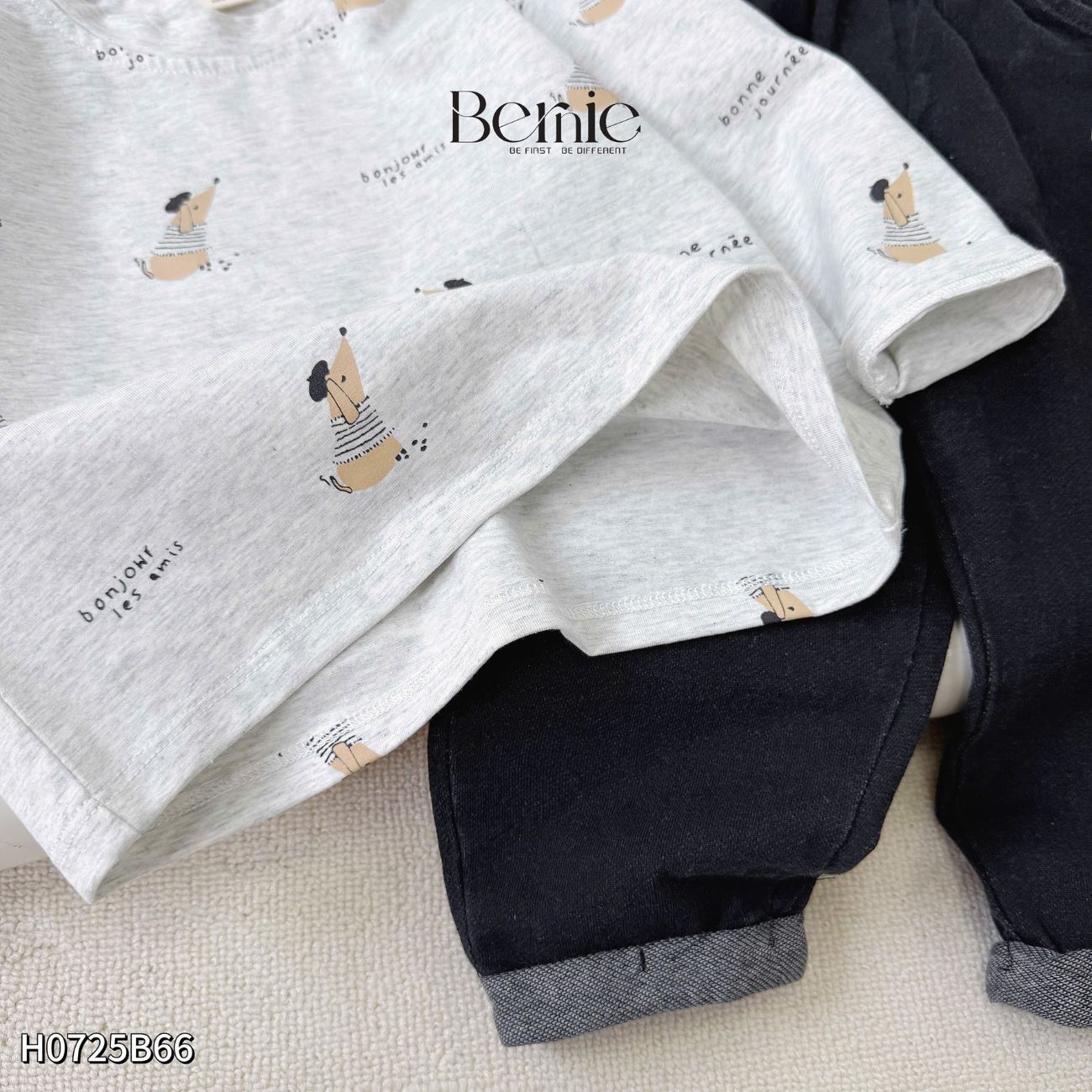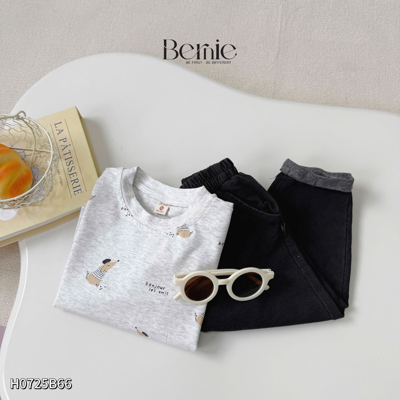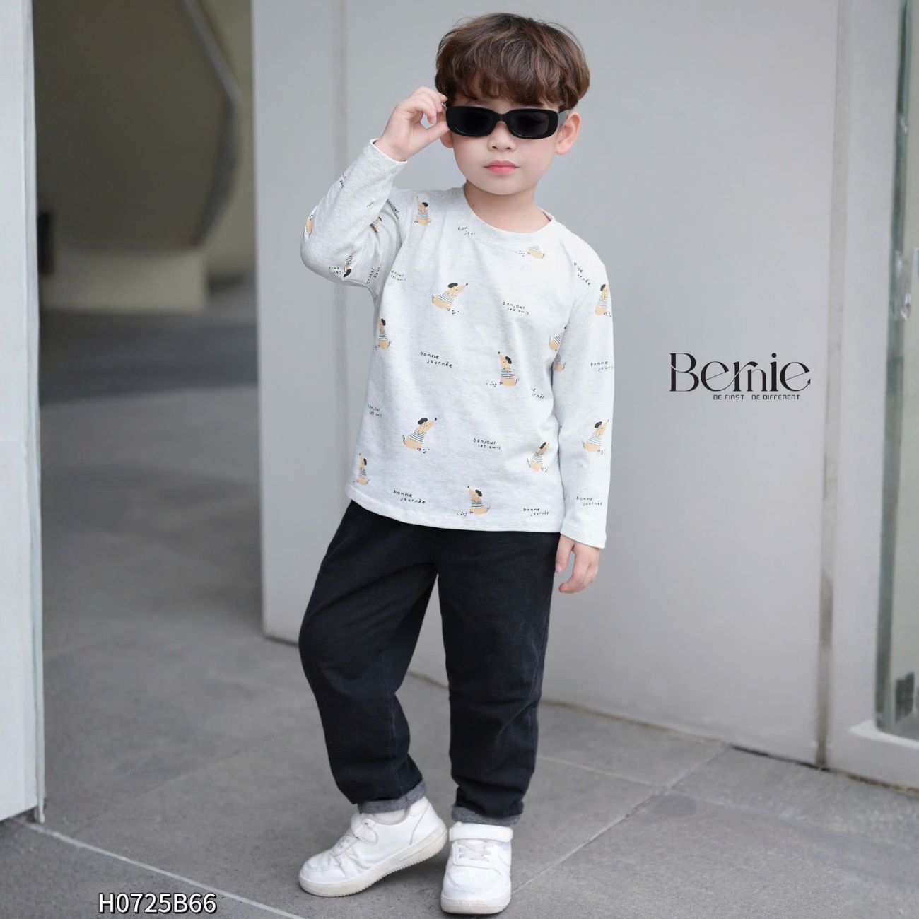 Set bộ thun cho bé trai tay dài áo thun họa tiết in cún hoạt hình quần dài da cá size 9 tới 28kg BERNIE H0725B66