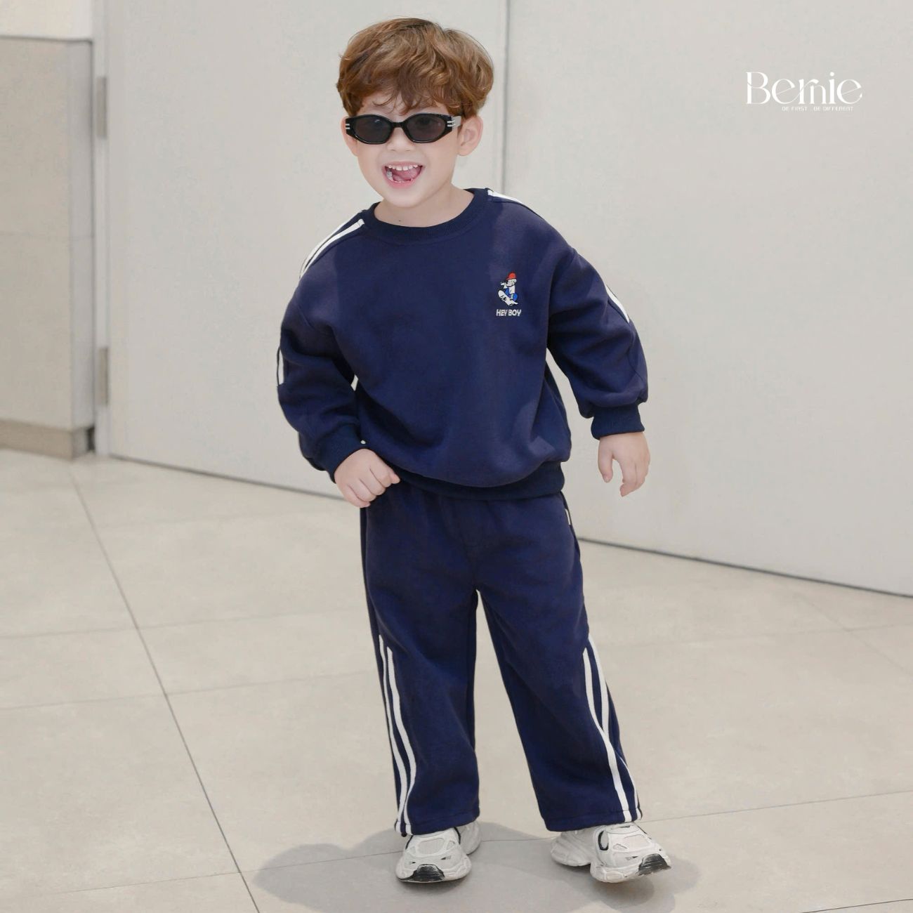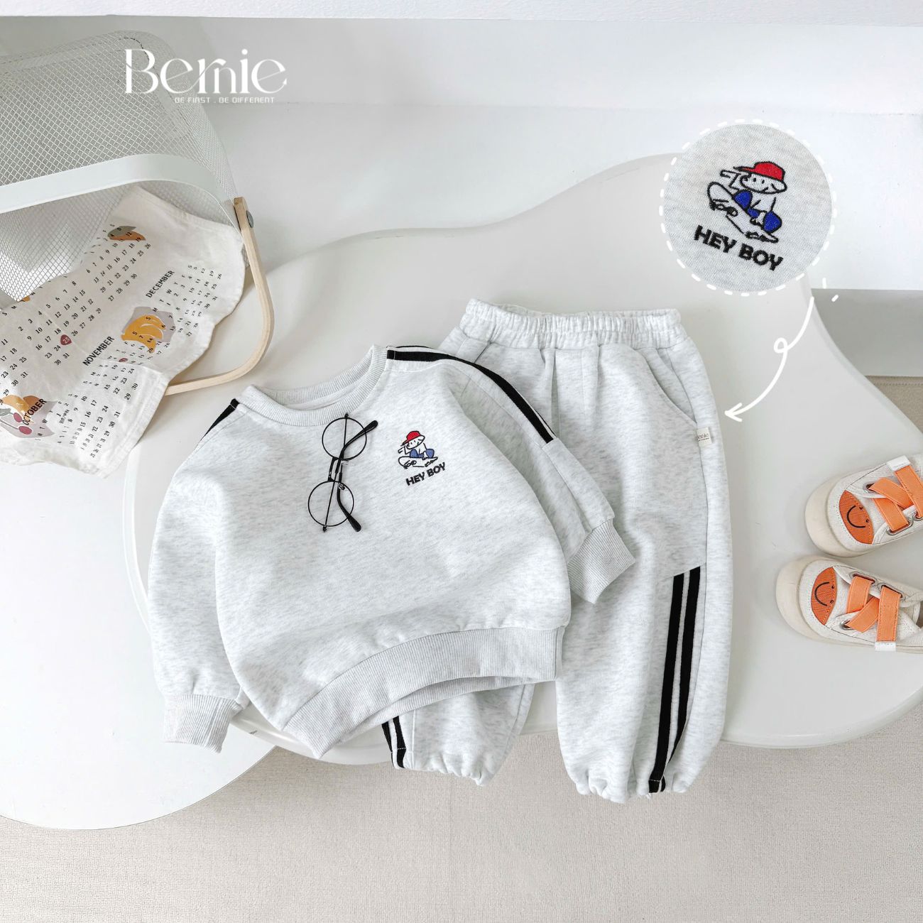 Set bộ dài thể thao phối sọc họa tiết hình thêu Hey boy kèm quần dài cho bé trai size 1 đến 7 tuổi BERNIE H0525B24