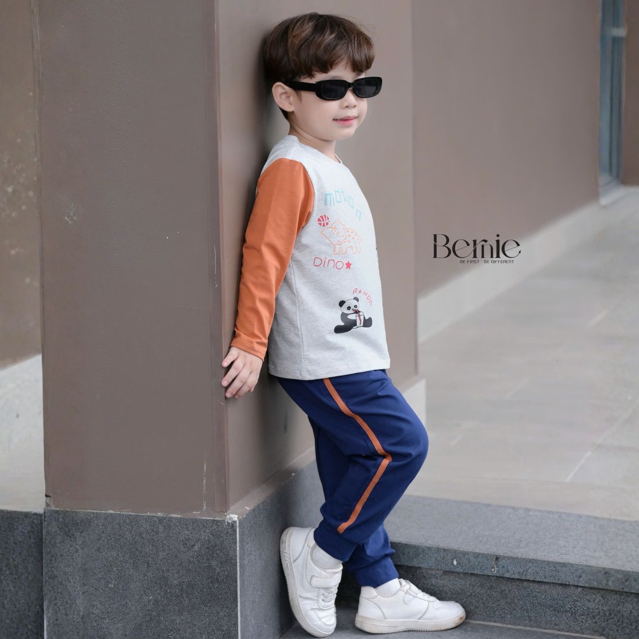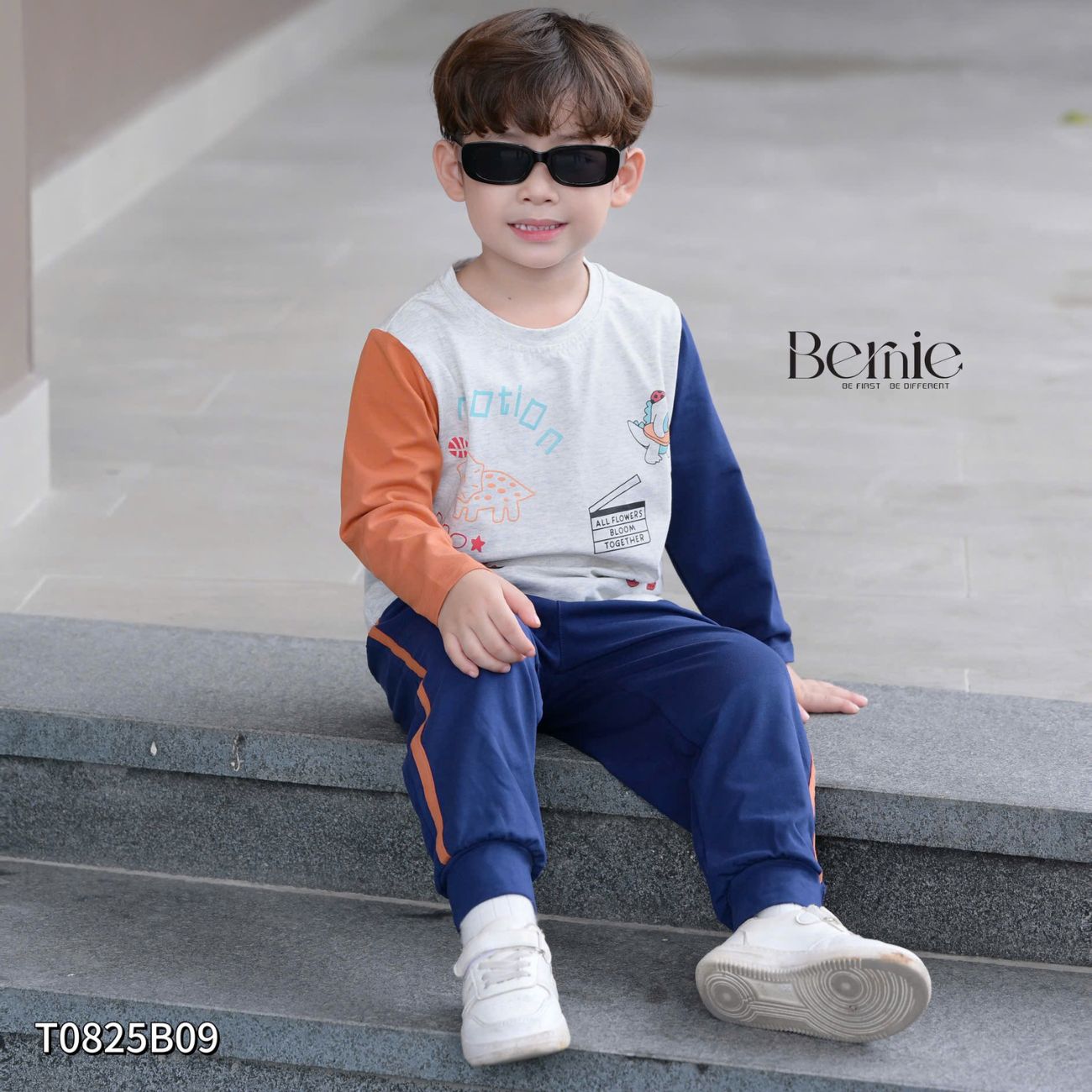 Set bộ thun cotton dài tay cho bé trai áo thun họa tiết hình in dễ thương kèm quần dài size 9 tới 28kg BERNIE T0825B09