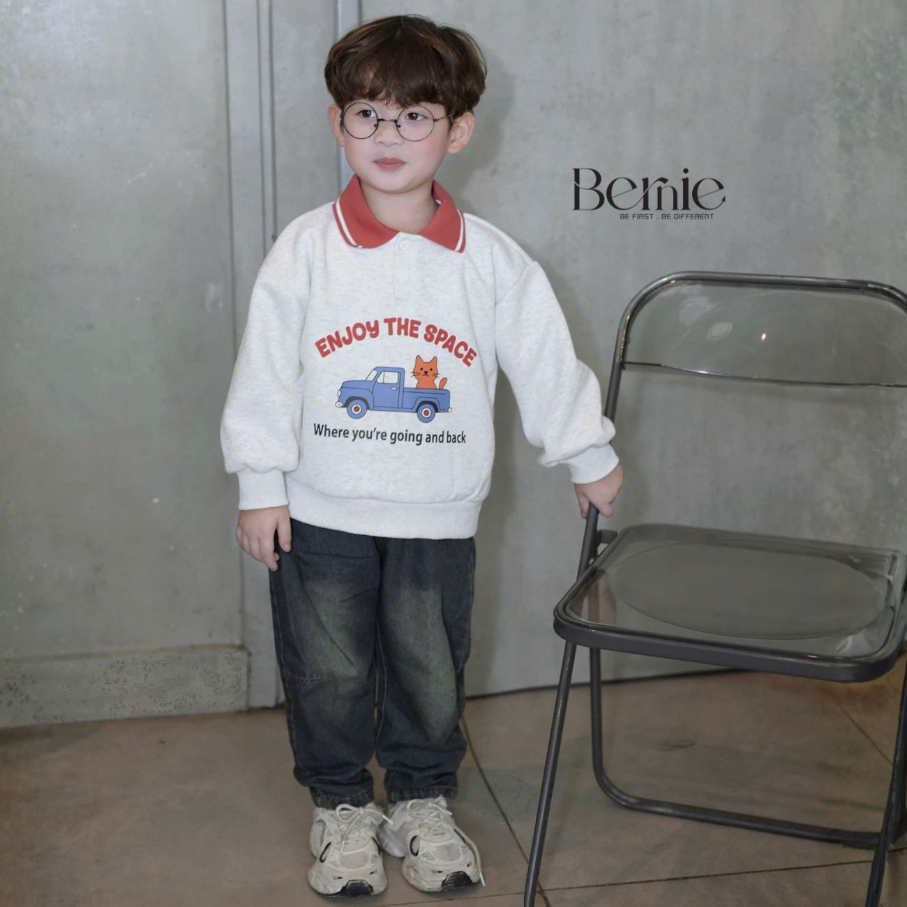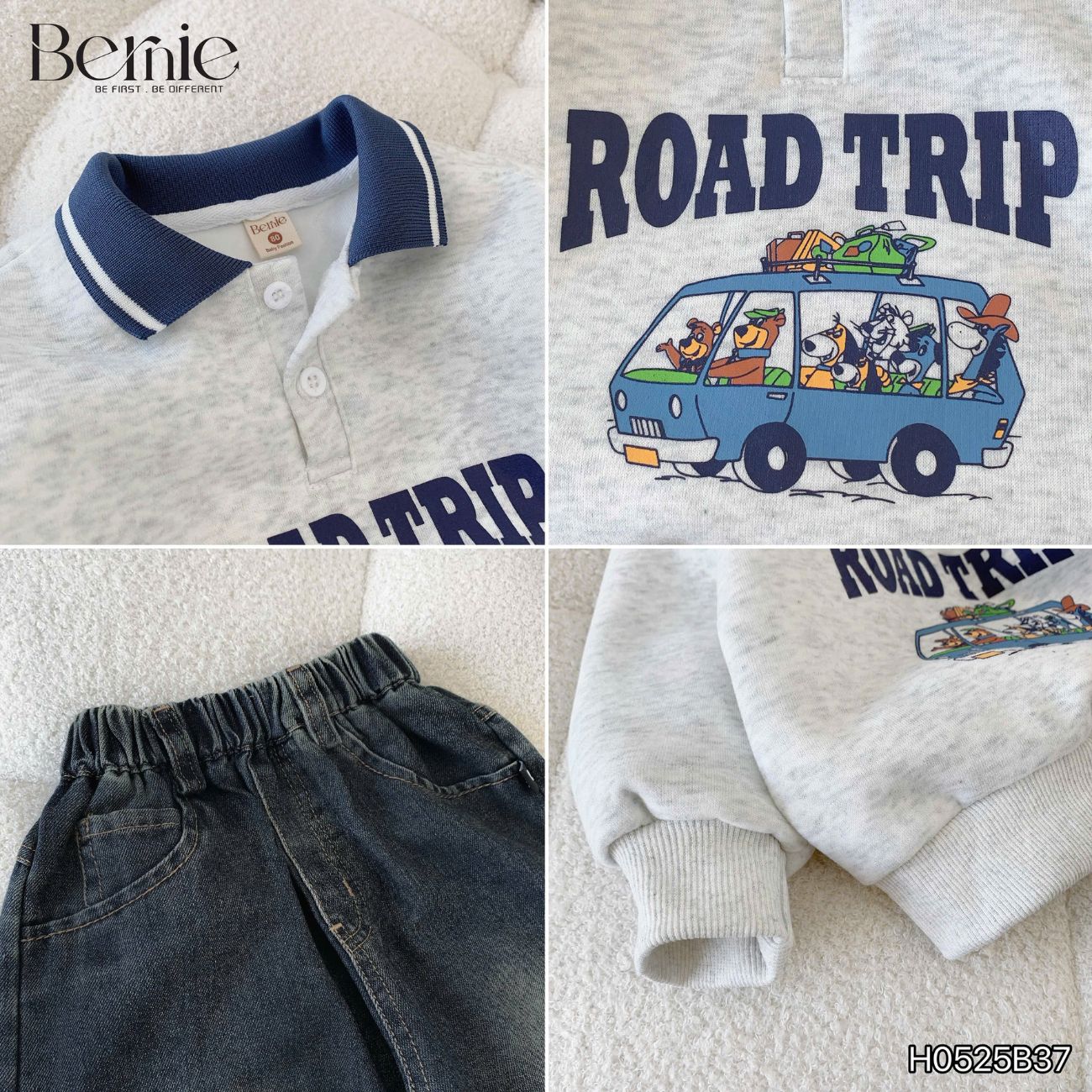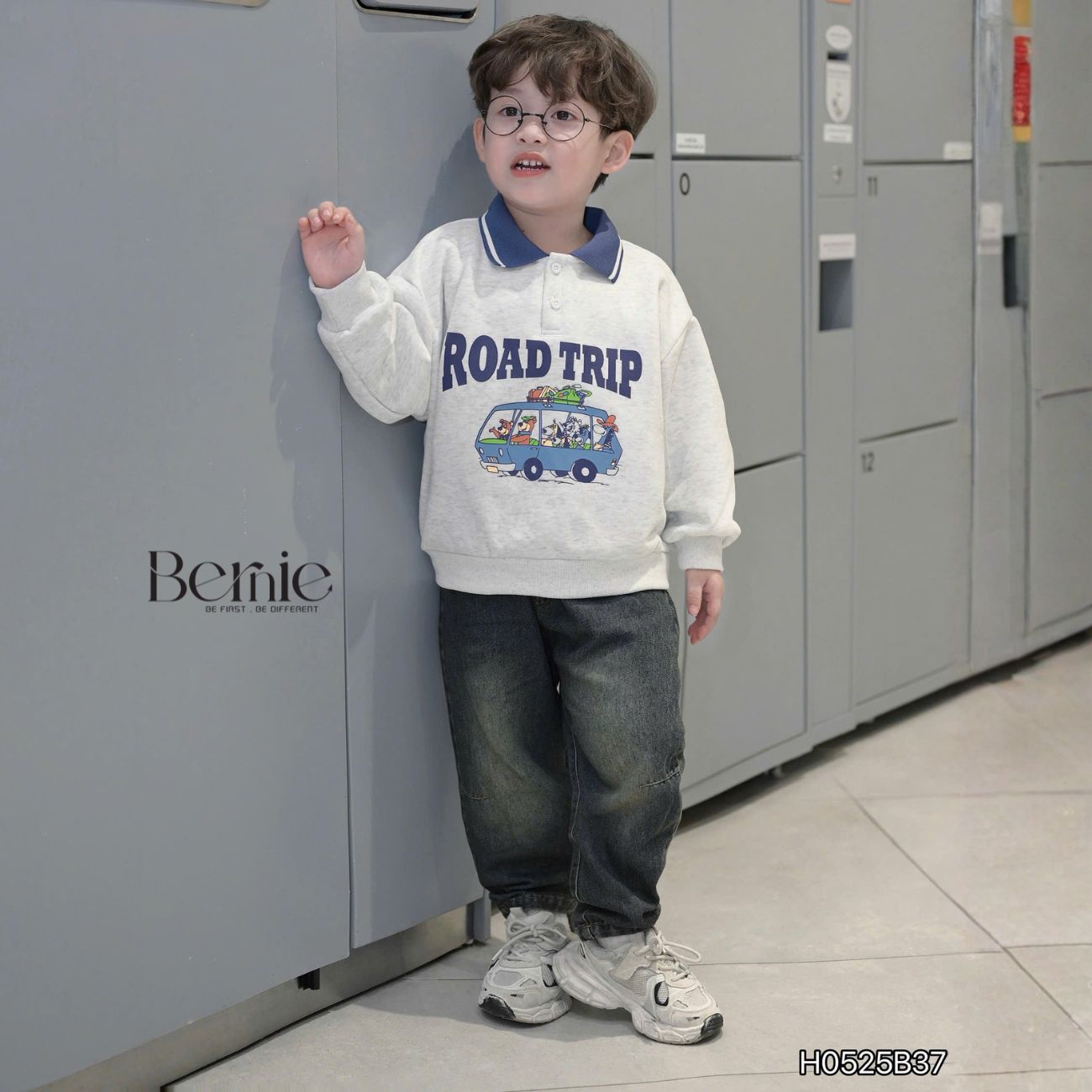Set bộ polo dài tay cho bé trai áo polo nỉ họa tiết Enjoy the space kèm quần jean dài size 9 tới 28kg BERNIE H0525B37