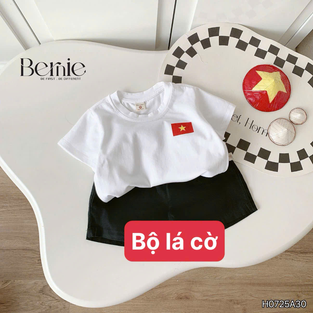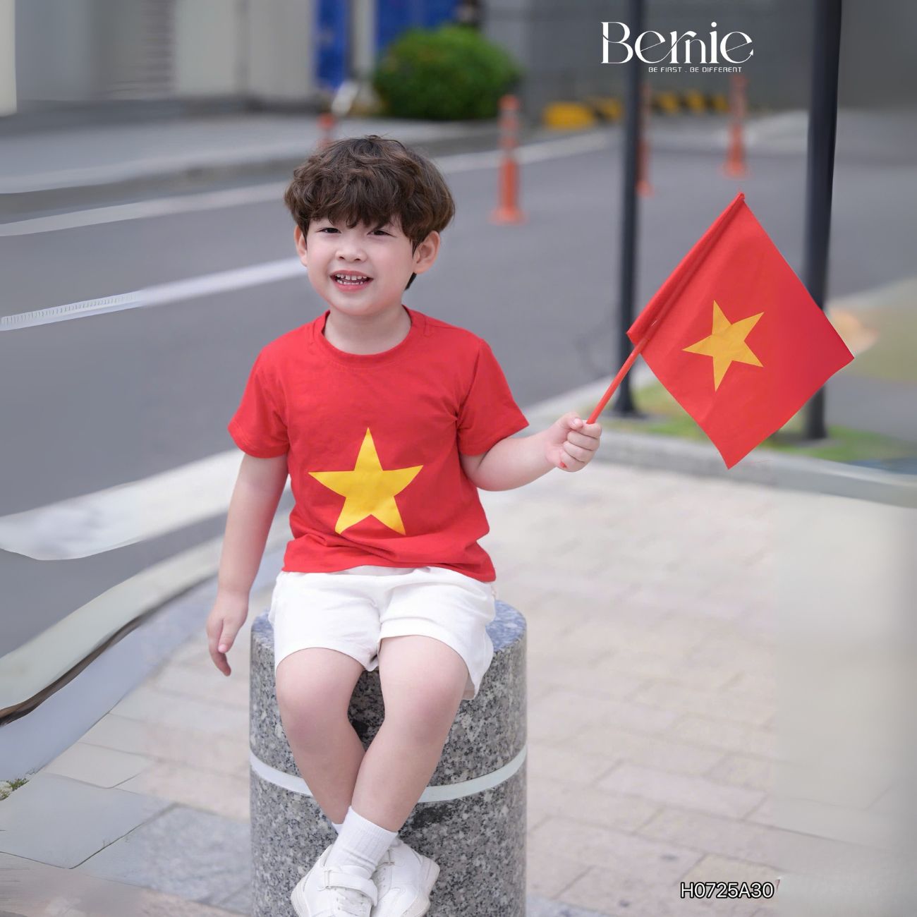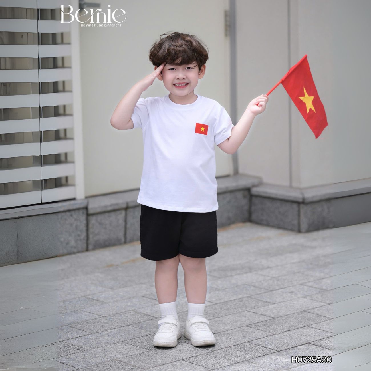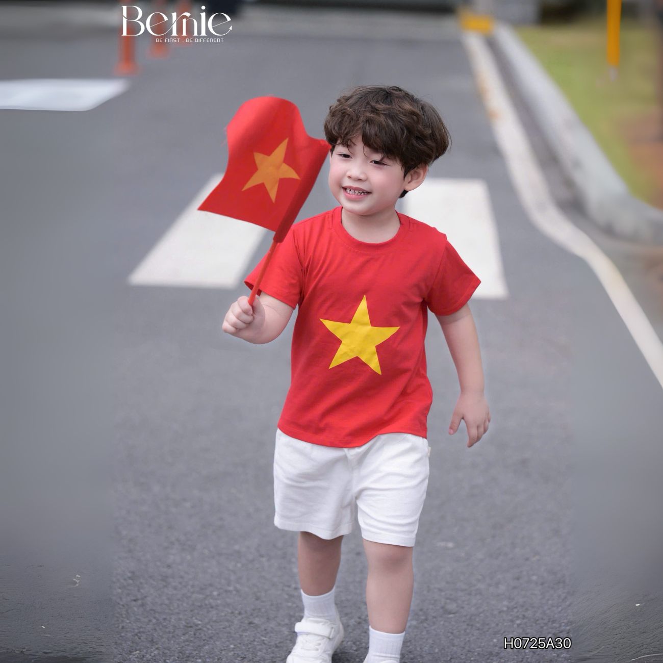 Thông tin sản phẩm: Set bộ cộc tay cho bé trai họa tiết Cờ đỏ sao vàng kèm quần short kaki từ 9 đến 28kg BERNIE BH0725A30