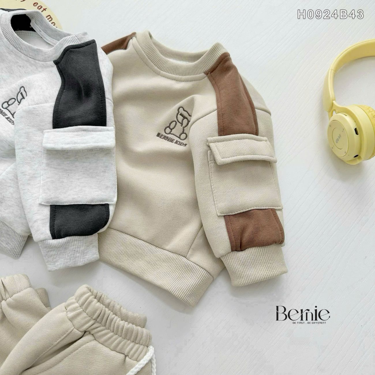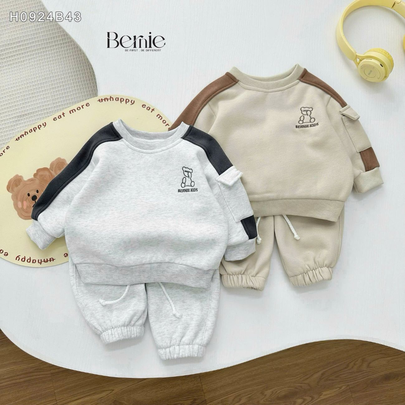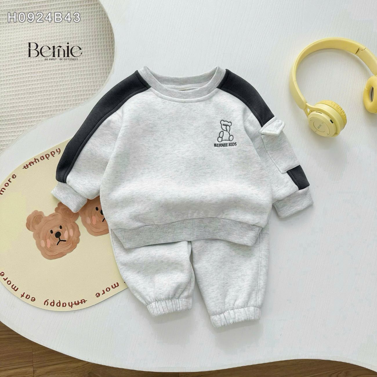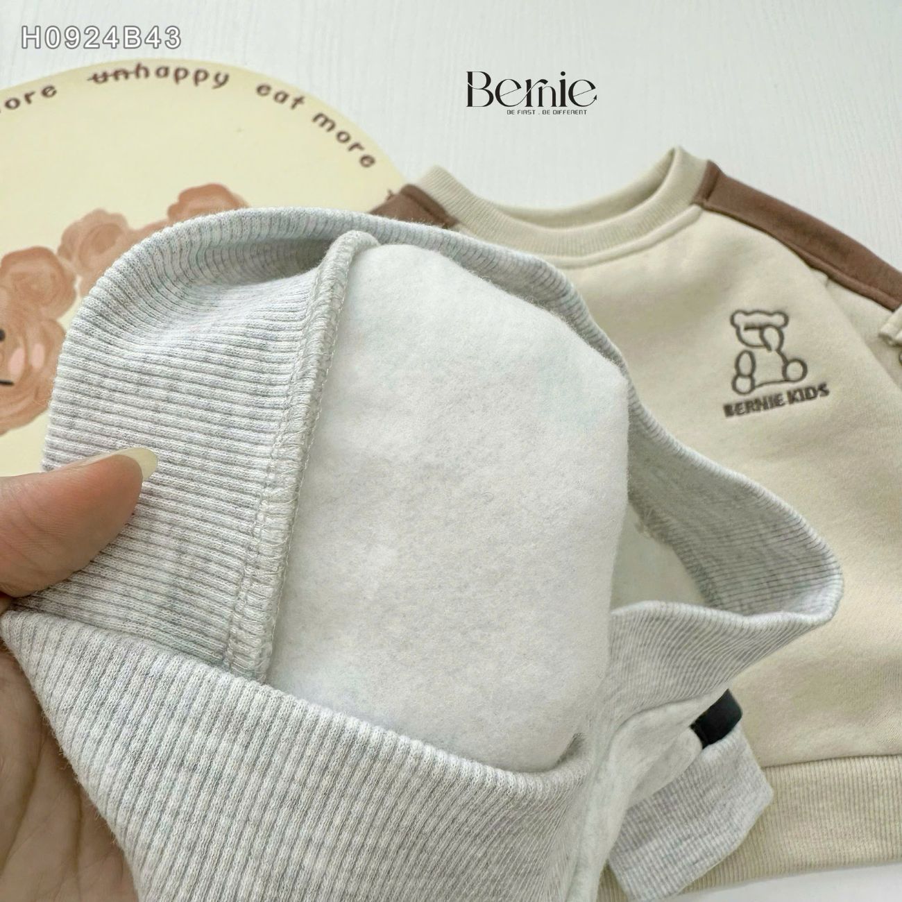 Set bộ tay dài phối màu chất nỉ bông họa tiết hình thêu gấu cho bé trai size 1 đến 7 tuổi BERNIE H0924B43