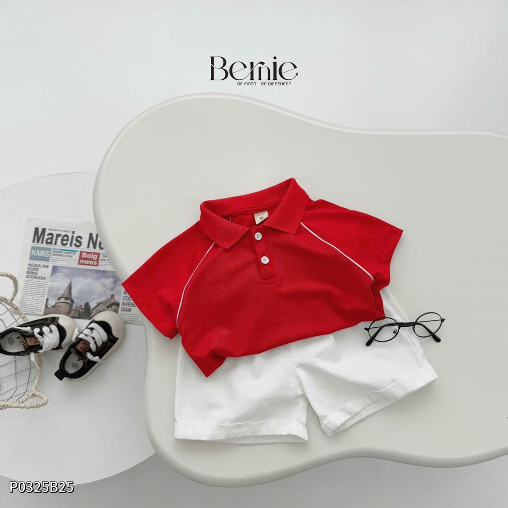 Set bộ polo đỏ cho bé trai phối viền thể thao kèm quần short kaki size 9 tới 25kg BERNIE P0325B25