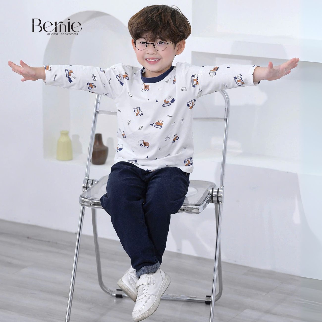- Chất liệu: Set bộ tay dài, đồ bộ thun cotton tay dài cho bé trai BERNIE KIDS có chất liệu áo là cotton 4 chiều mềm mịn sịn sò, thoáng mát, thấm hút mồ hôi tốt. Quần chất da cá giống jean dày dặn, đứng phom