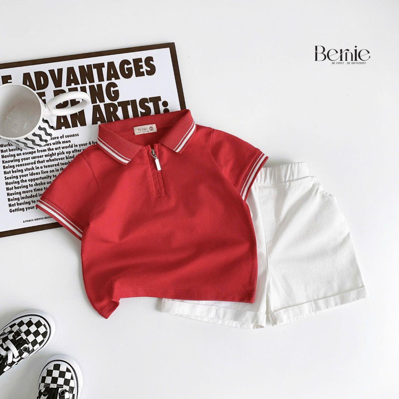 - Chất liệu: Set bộ polo cho bé trai, set polo phối khóa kéo và quần short Bernie phong cách hàn quốc, năng động, khỏe khoắn với chất liệu áo chất polo cá sấu mềm mại, xin sò thoáng mồ hôi, quần short chất kaki mềm mịn nhưng đứng phom