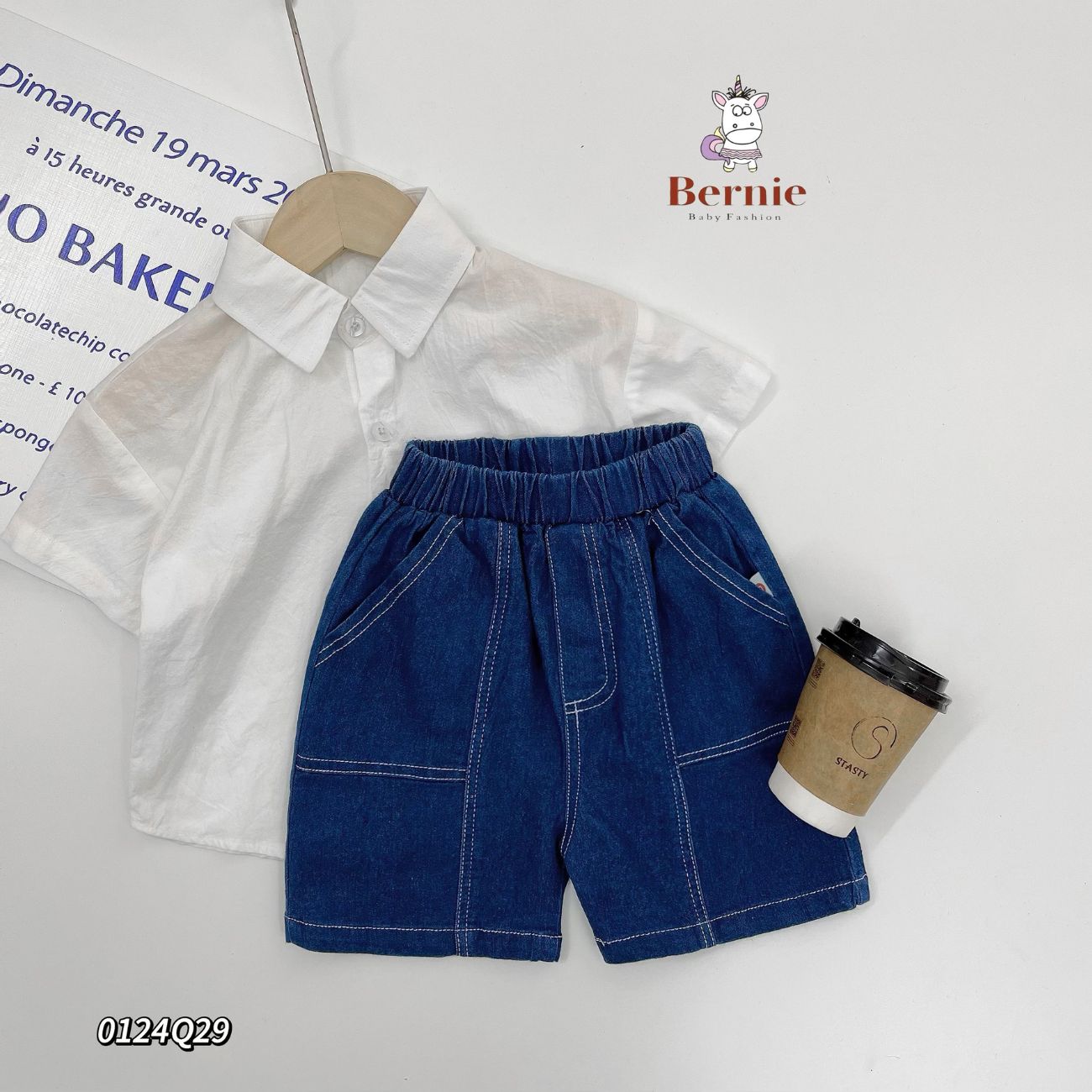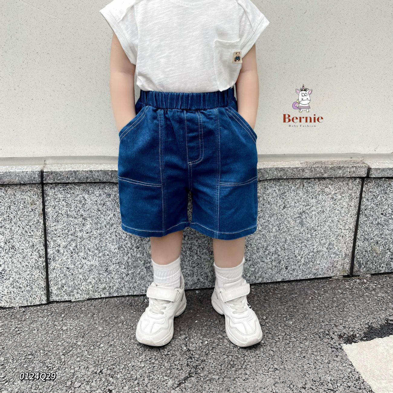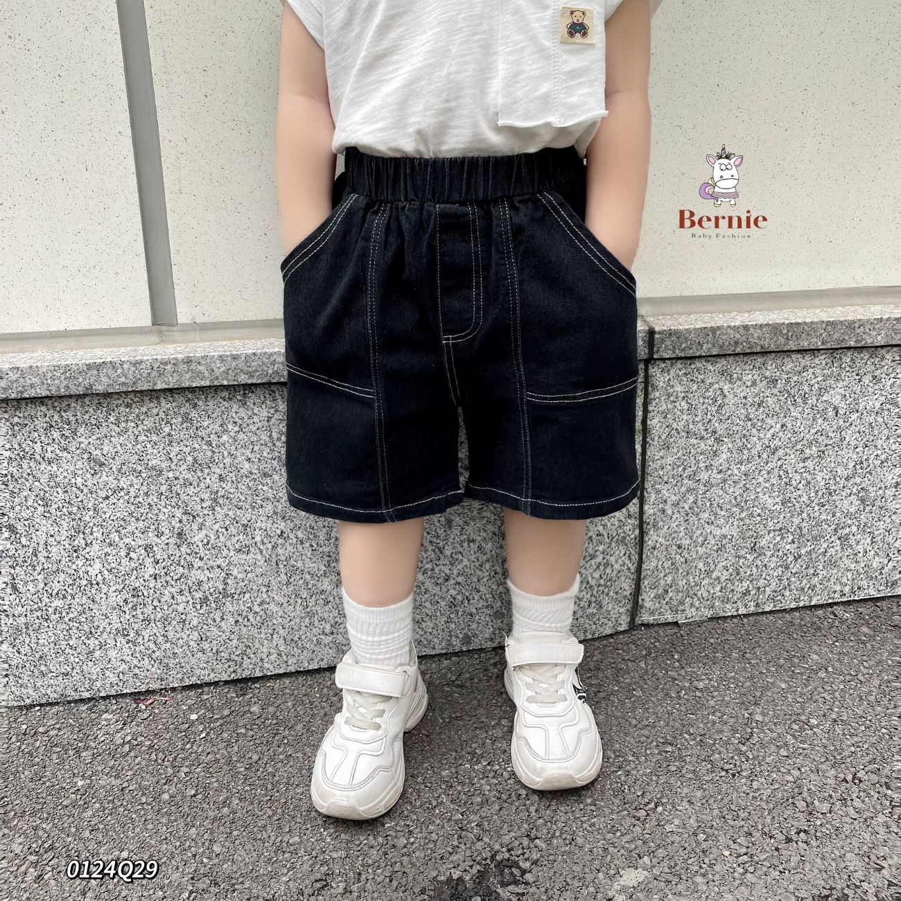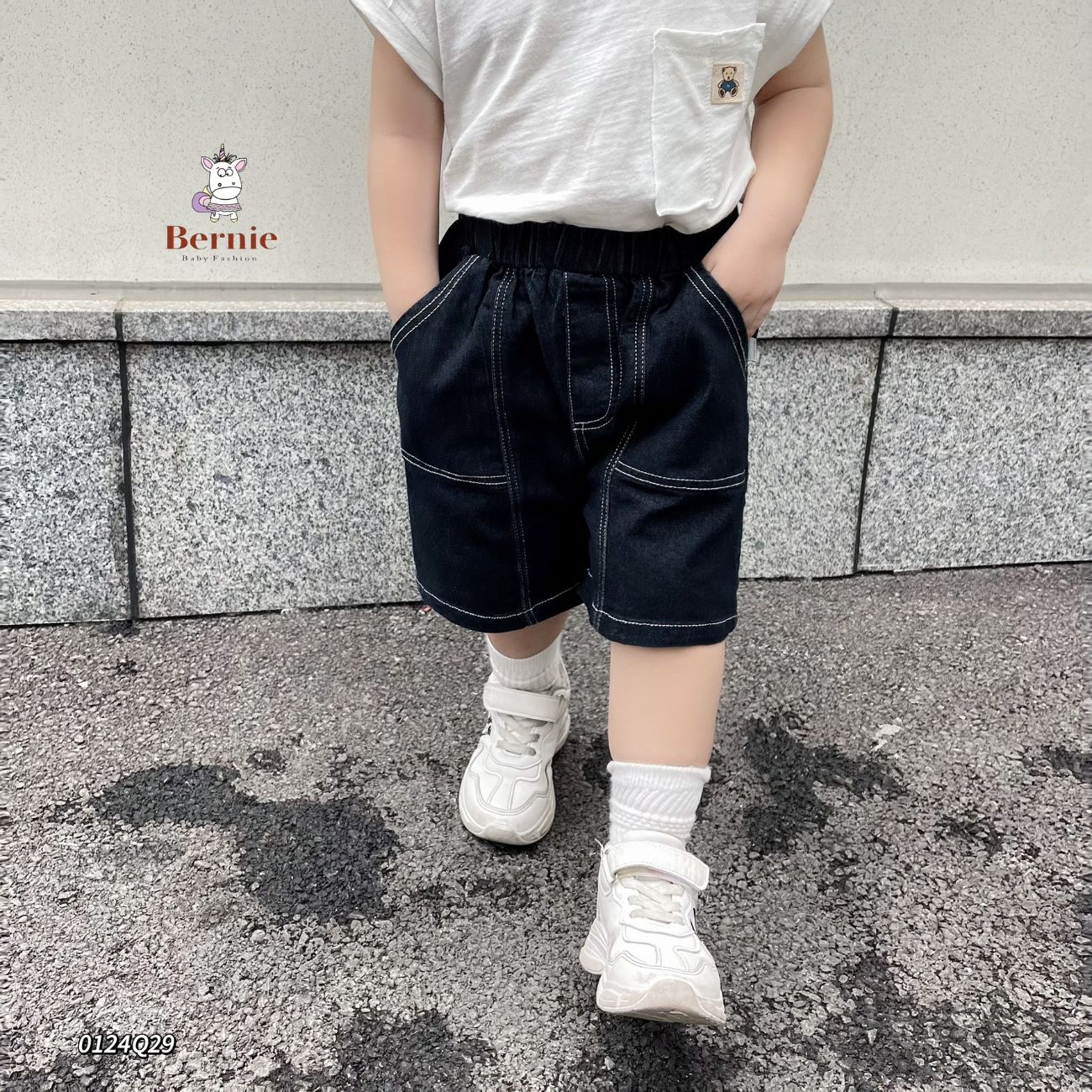 Tên sản phẩm : Quần short jean quần short lửng trần chỉ nổi cho bé trai phong cách Hàn quốc size 1 tới 7 tuổi Bernie 0124Q29