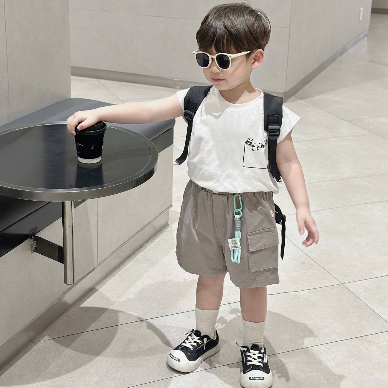 Quần short quần kaki đùi phối túi hộp 1 bên cho bé trai với lưng quần bản chun co giãn tốt , thoải mái vận động không lo hằn bụng bé yêu