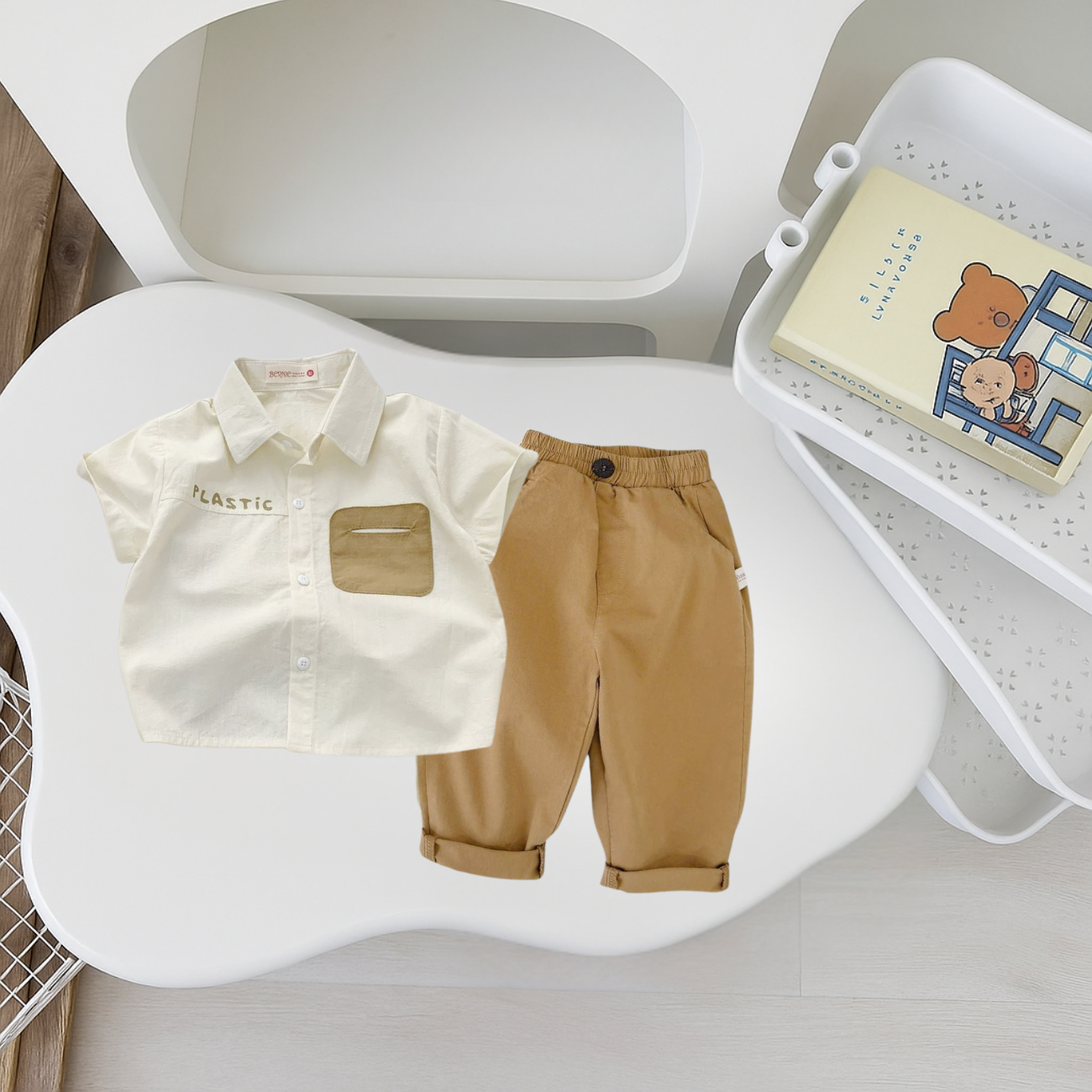 Set bộ sơ mi plastic cho bé trai có thể tách set mix match với những trang phục khác nhau