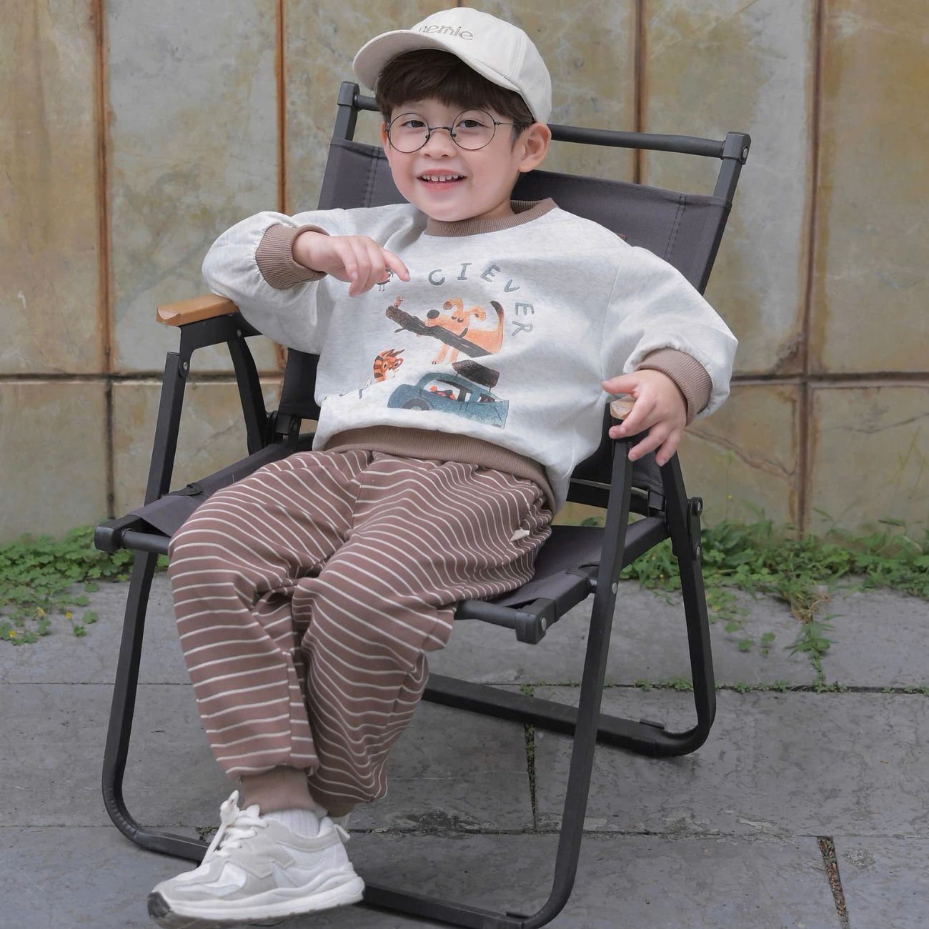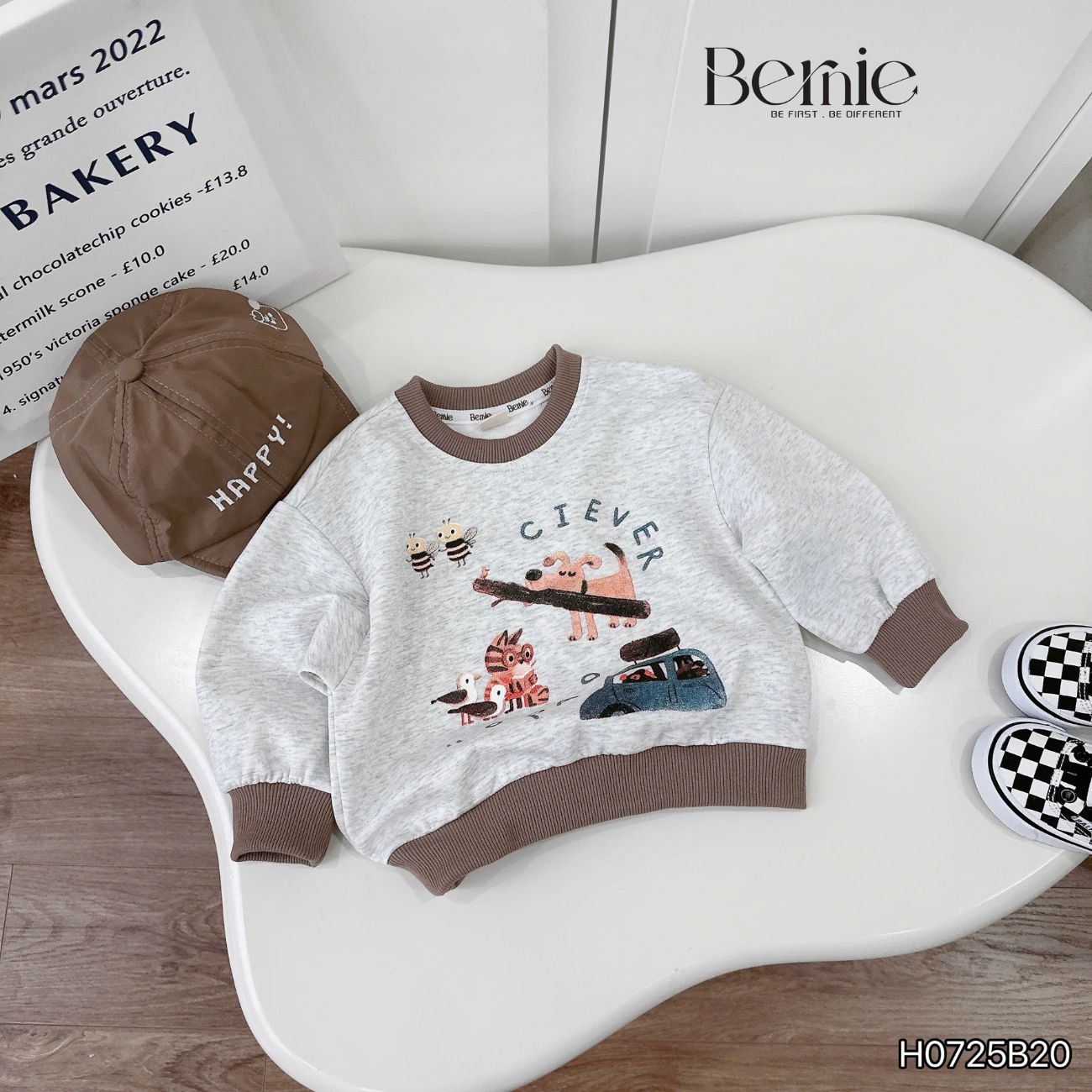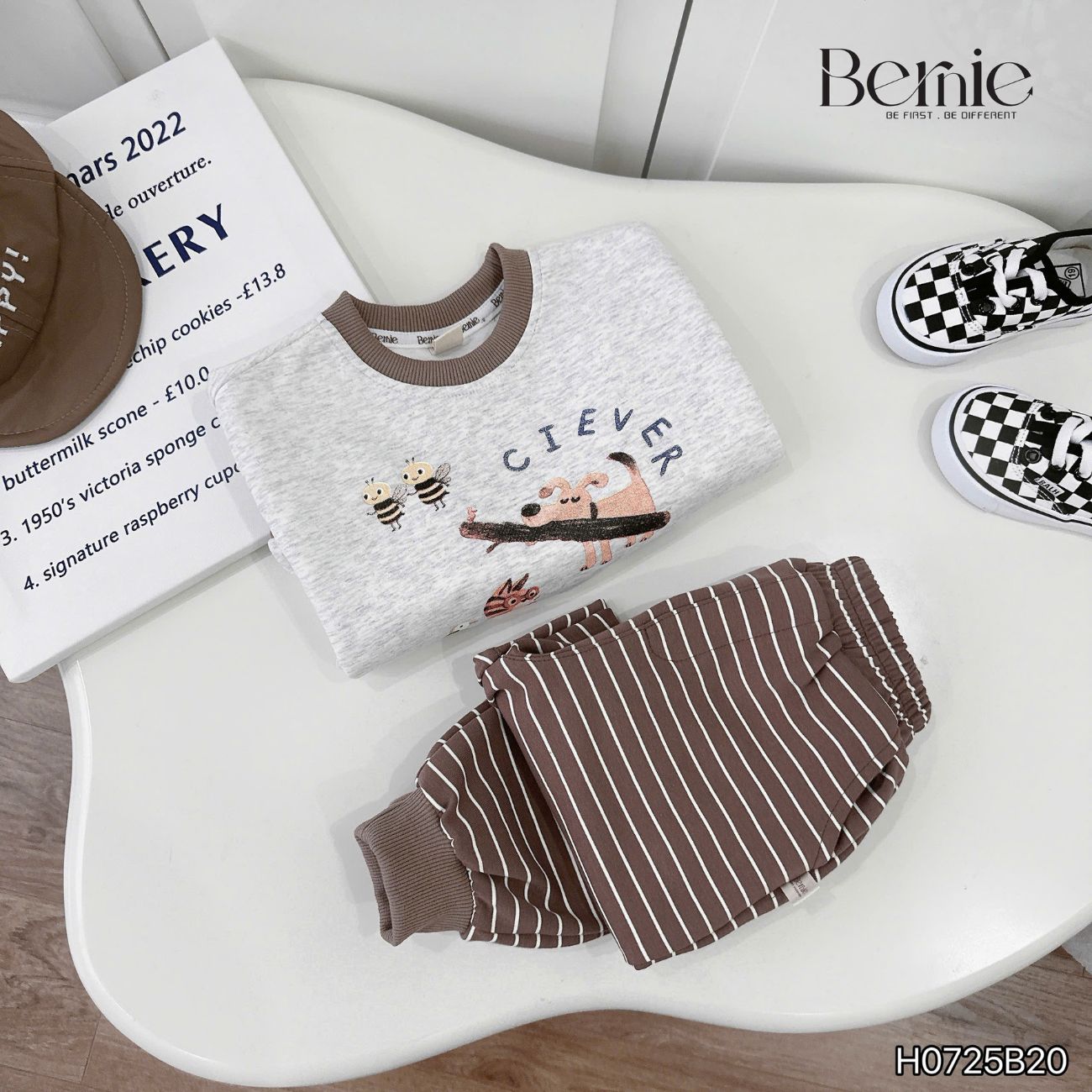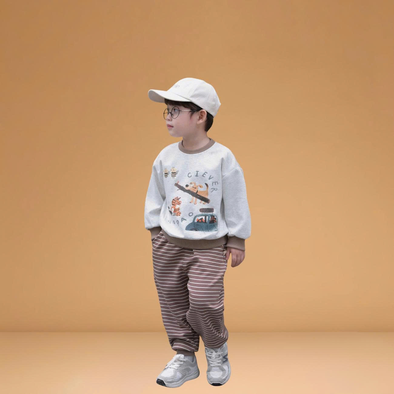 Set bộ nỉ dài tay họa tiết hoạt hình Clever kèm quần dài kẻ ngang cho bé trai size 9 tới 28kg BERNIE H0725B20