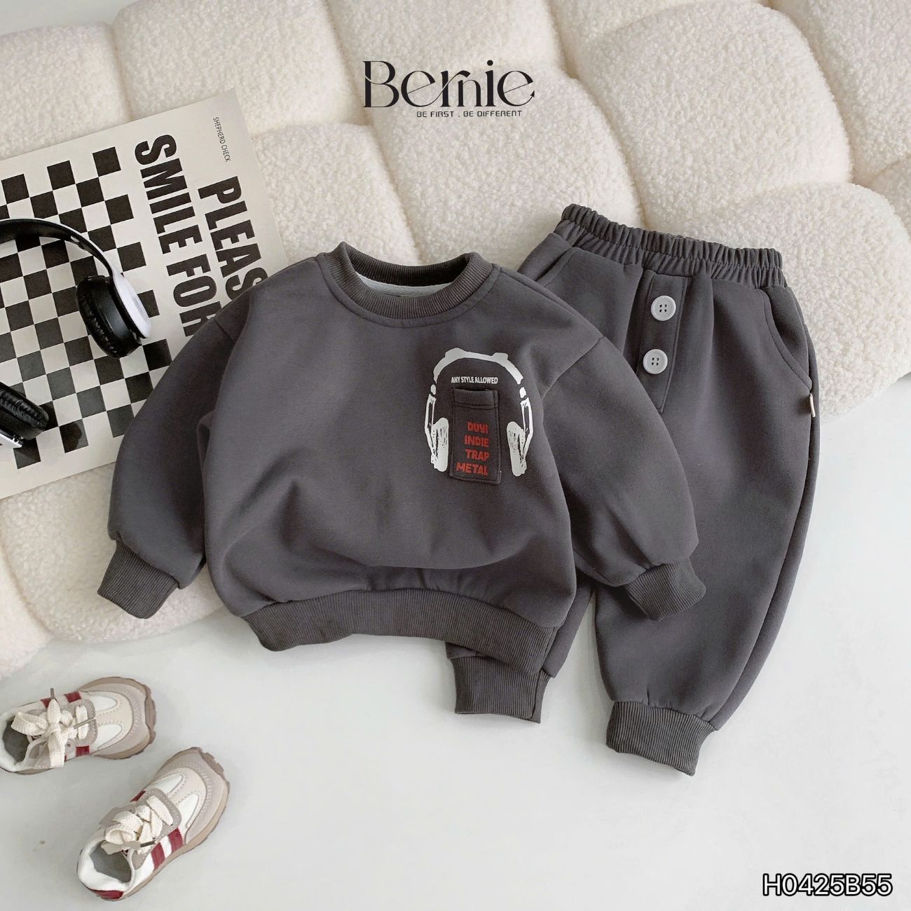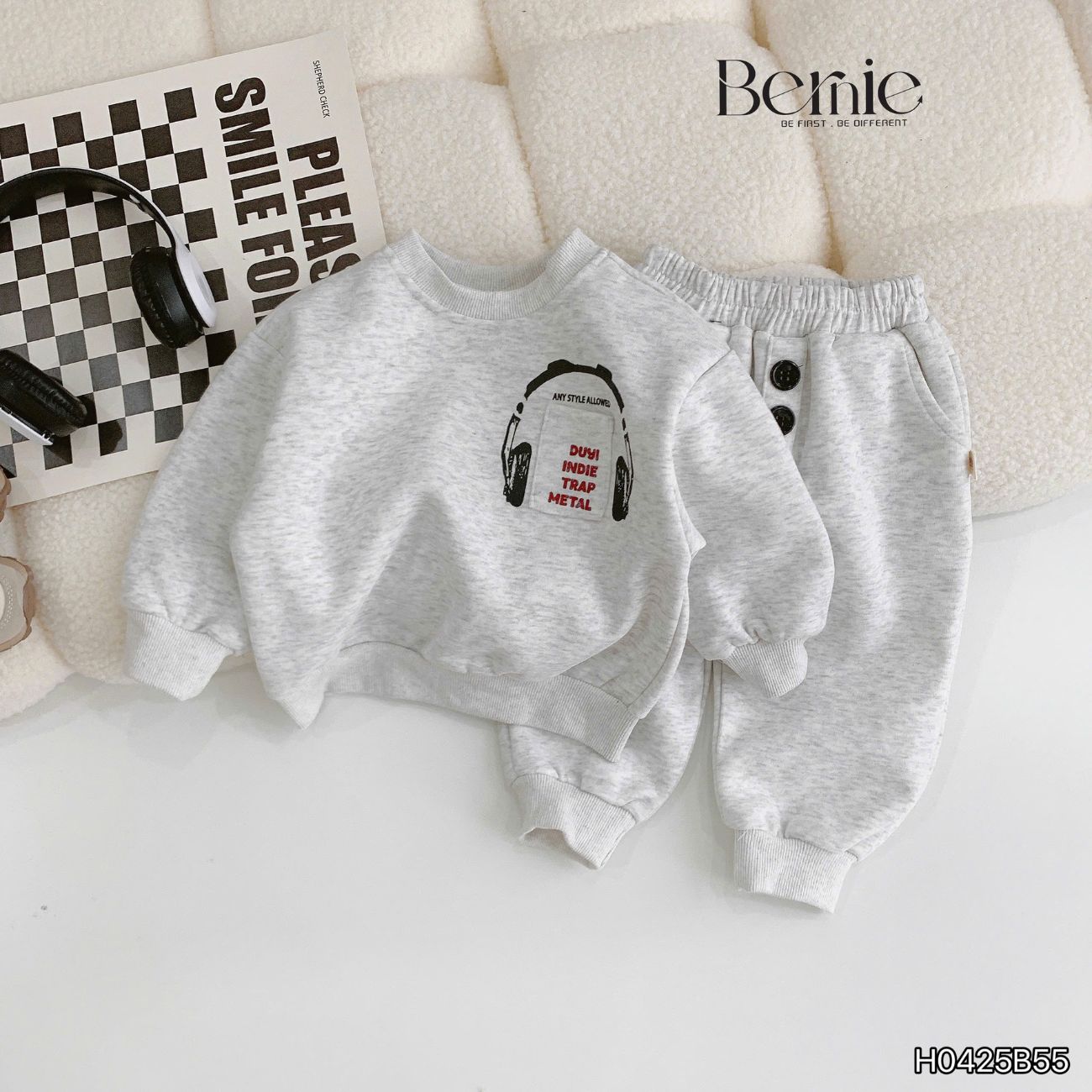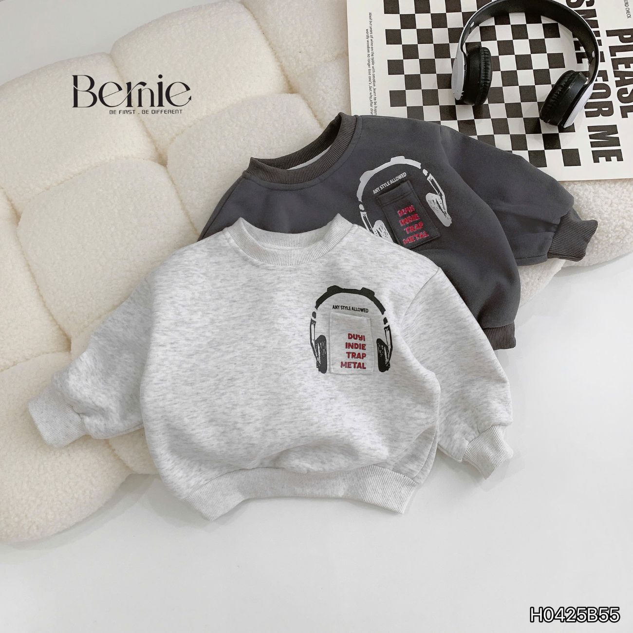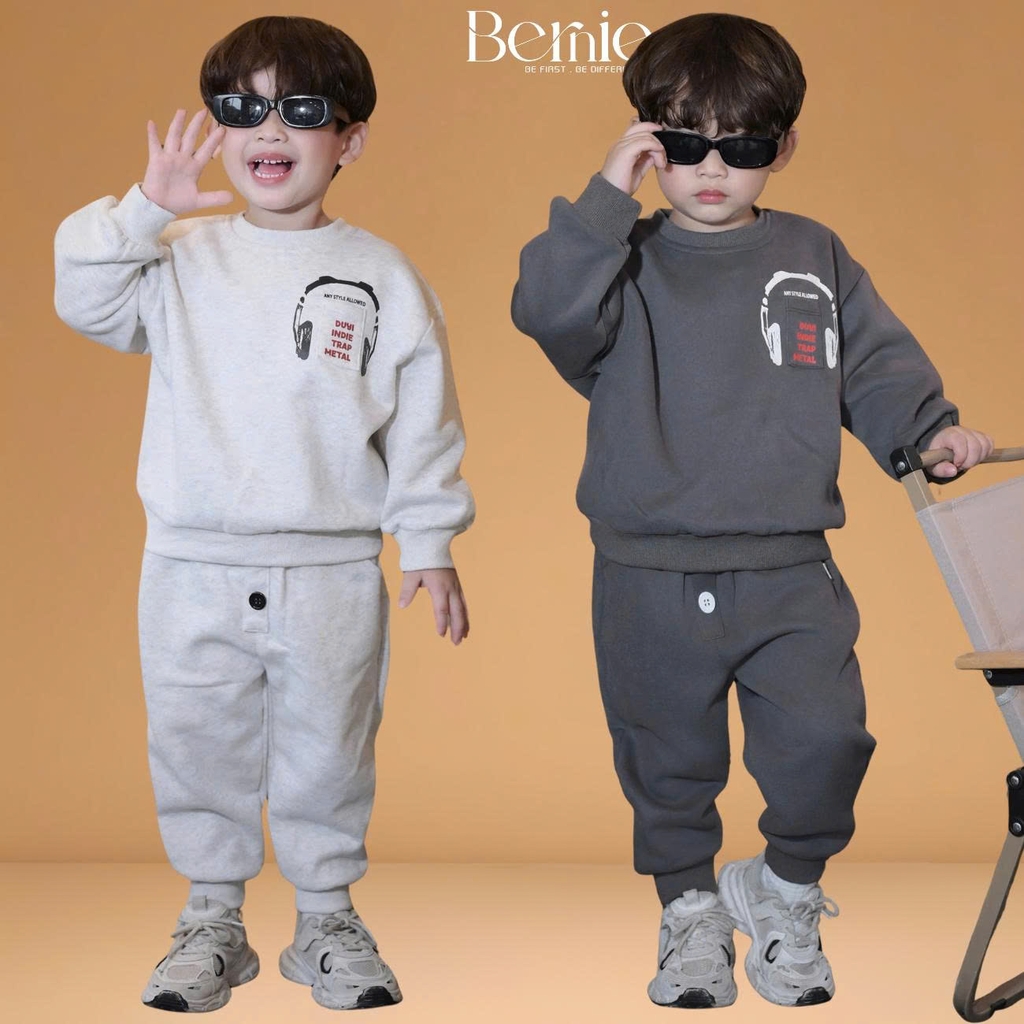 Set bộ nỉ dài tay họa tiết Headphone kèm quần dài cho bé trai size 9 tới 28kg BERNIE H0425B55