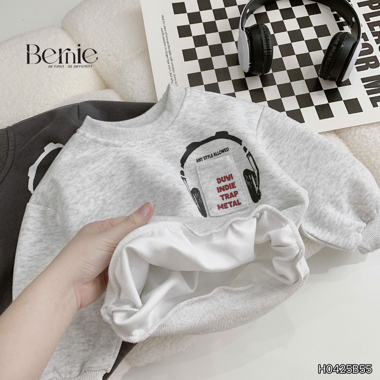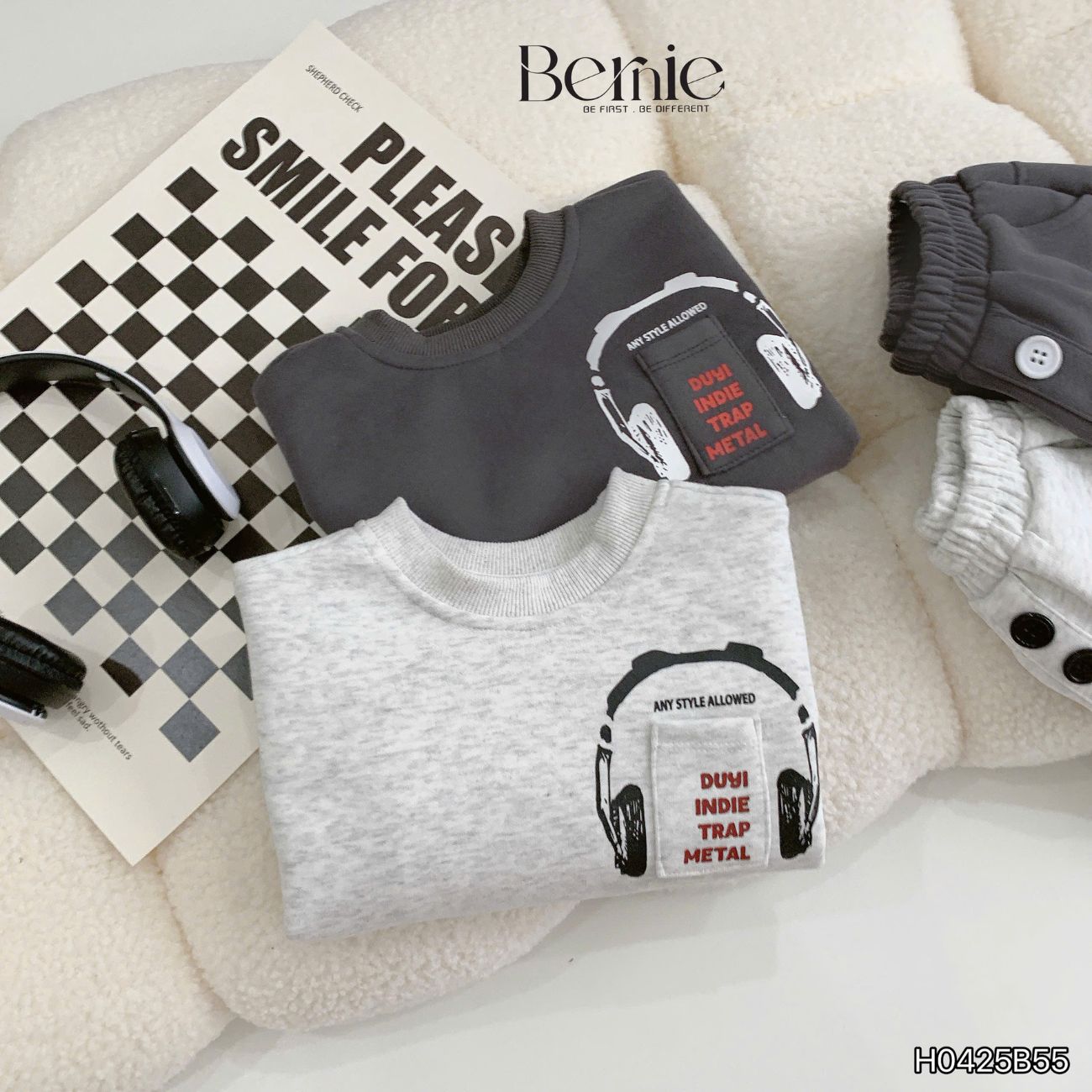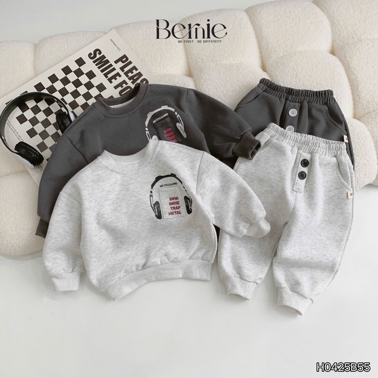 Set bộ nỉ dài tay họa tiết Headphone kèm quần dài cho bé trai size 9 tới 28kg BERNIE H0425B55