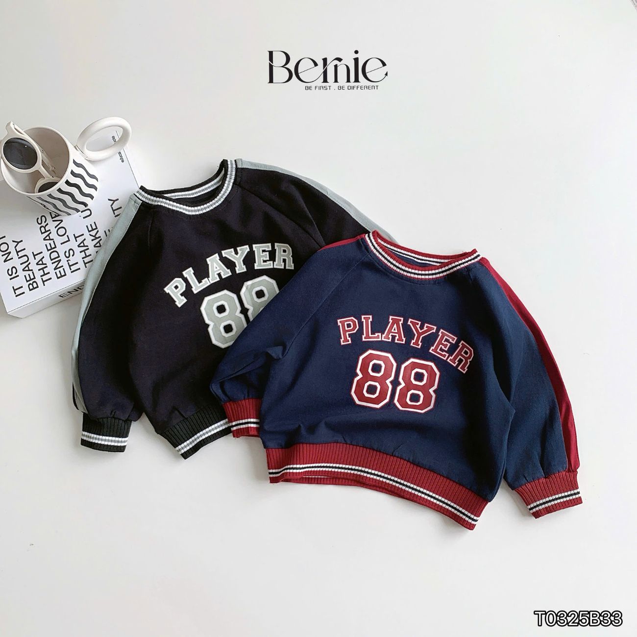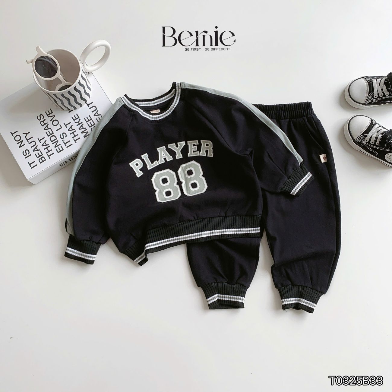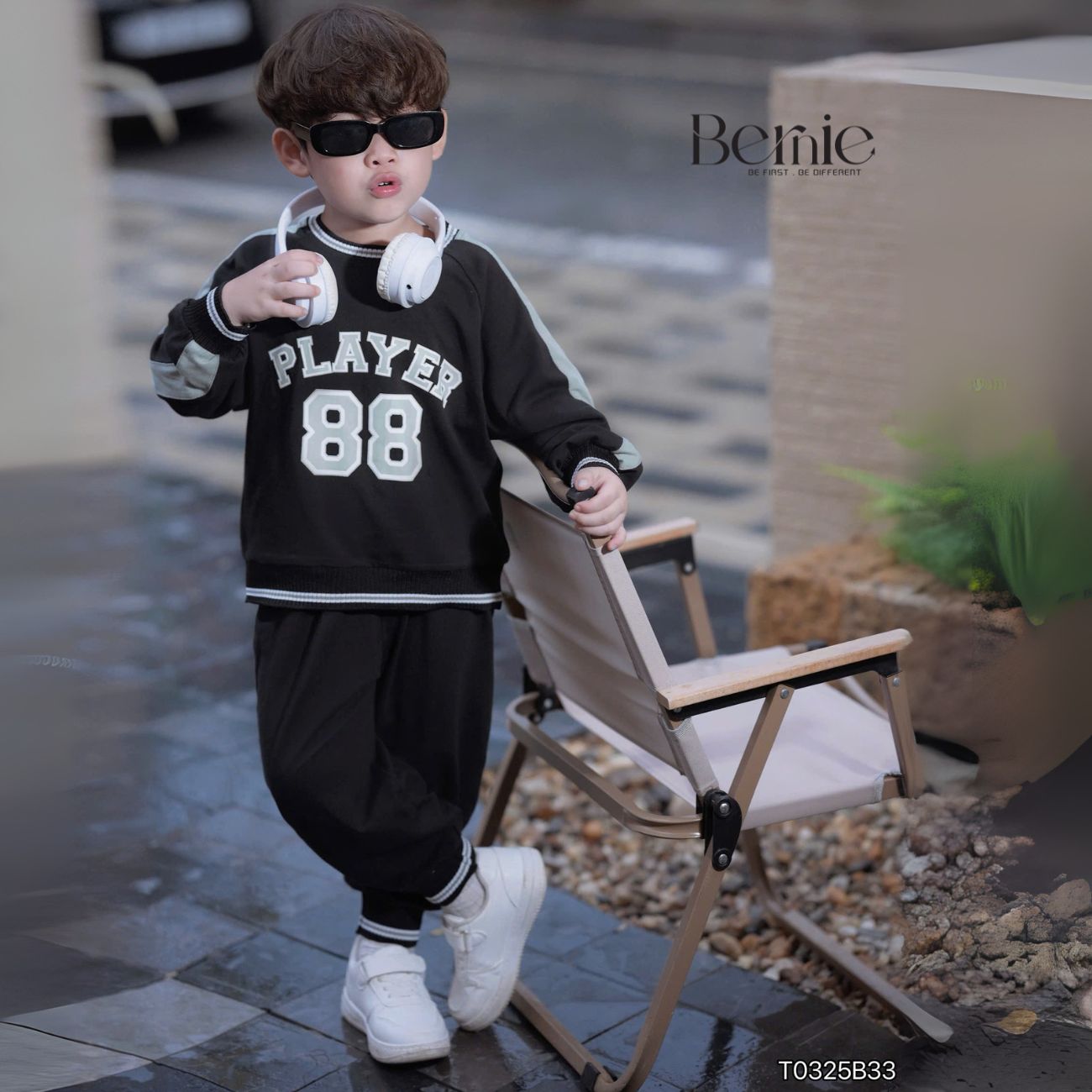 Set bộ dài thể thao chất thun cotton họa tiết hình in Player 88 kèm quần dài cho bé trai size 1 đến 7 tuổi BERNIE T0325B33