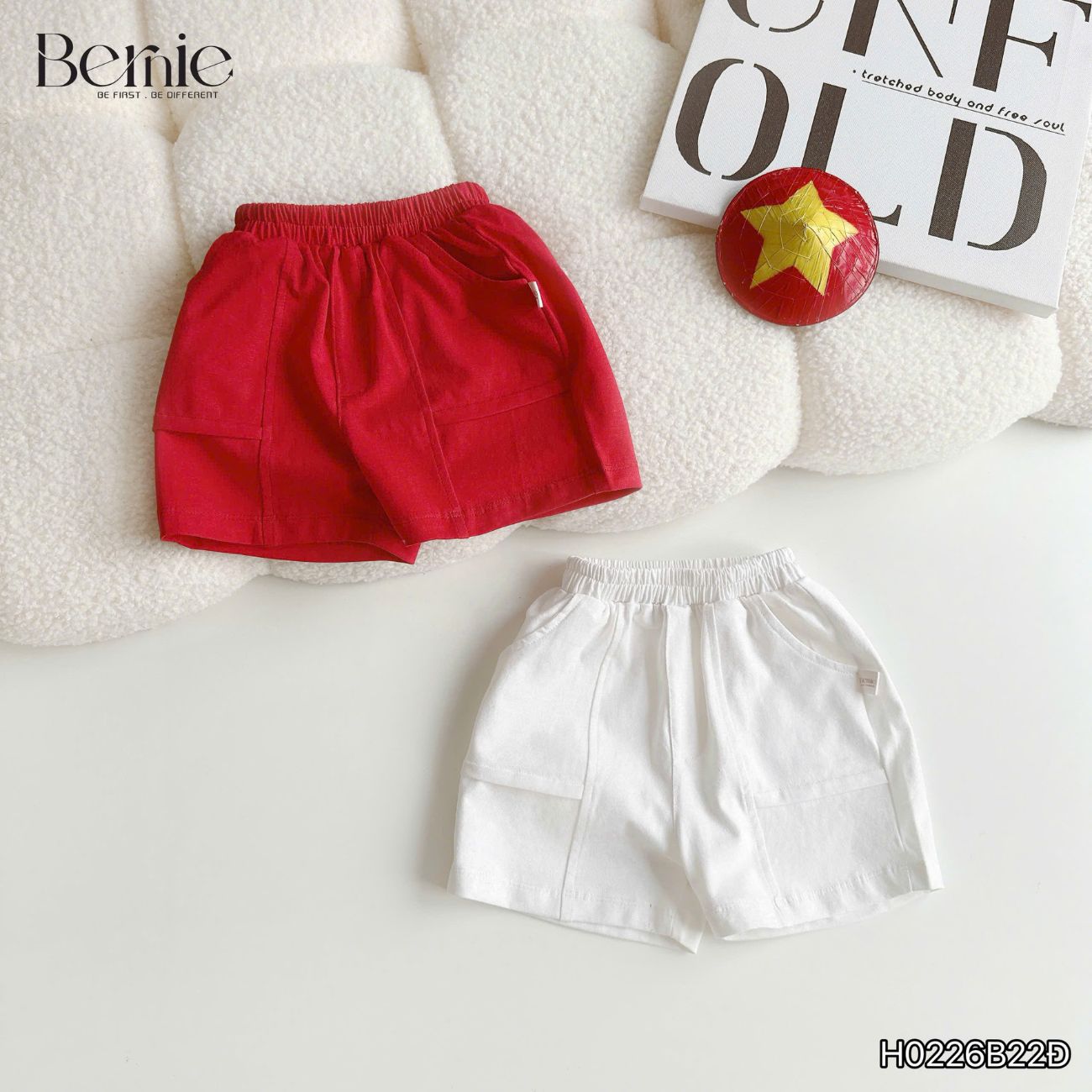 - Màu sắc : Set bộ cộc tay cho bé trai họa tiết Cờ đỏ sao vàng kèm quần short kaki từ 9 đến 28kg BERNIE có 2 màu nổi bật là Áo đỏ / áo trắng phối chữ đỏ vàng và Quần đỏ / quần trắng mix cực nổi