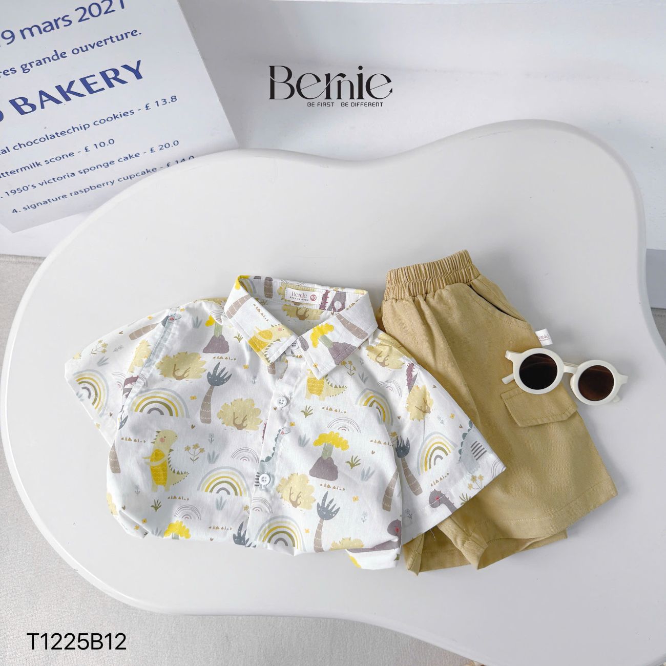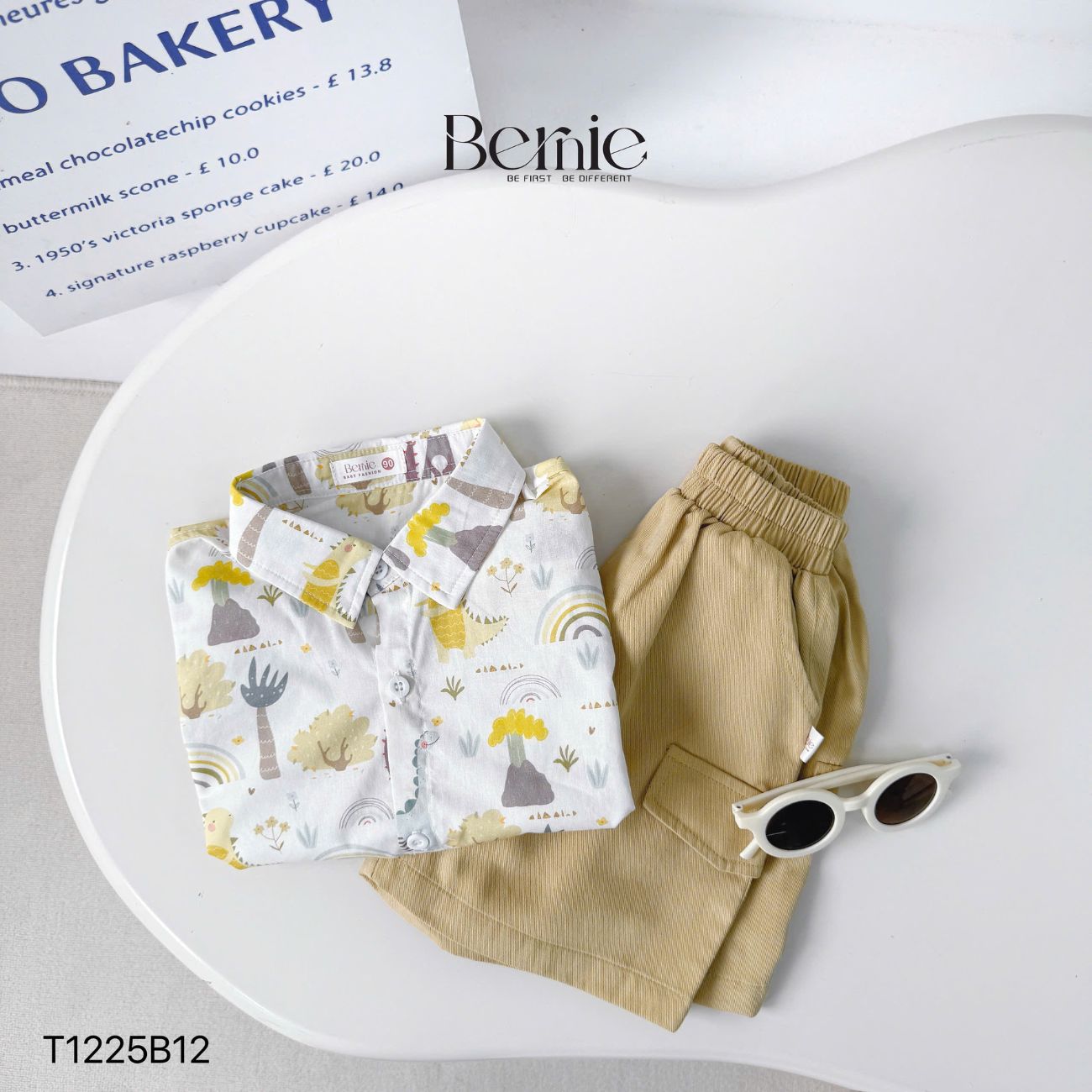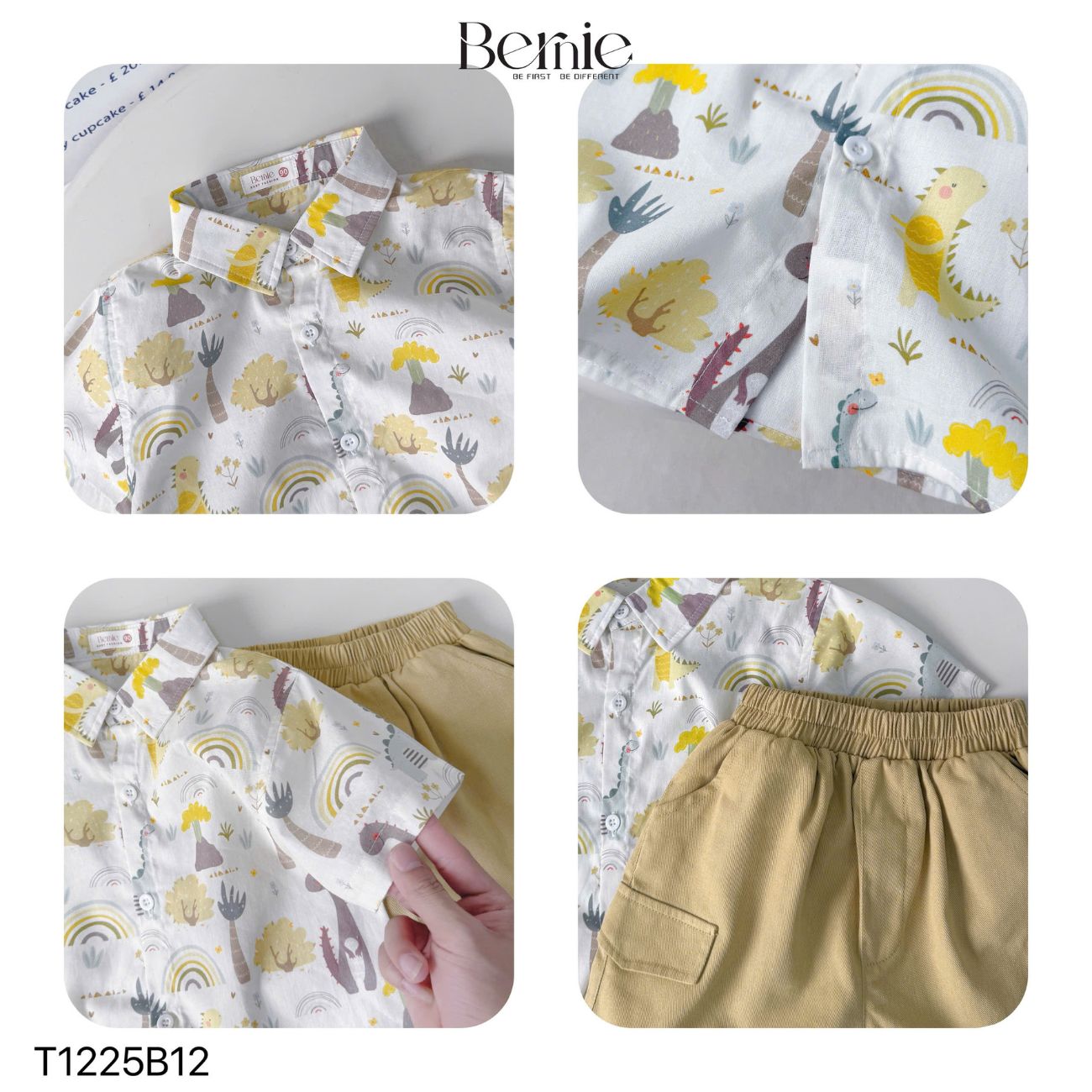 - Màu sắc: Set bộ quần áo đi chơi, set sơ mi ngắn tay cho bé trai đi chơi, đi học đi du lịch Bernie Kids với tông màu be – trắng phối họa tiết nhẹ nhàng, dễ mặc, dễ phối thêm giày, dép, phụ kiện mà không bị rối mắt. Tổng thể set nhìn gọn gàng nhưng vẫn có điểm nhấn riêng