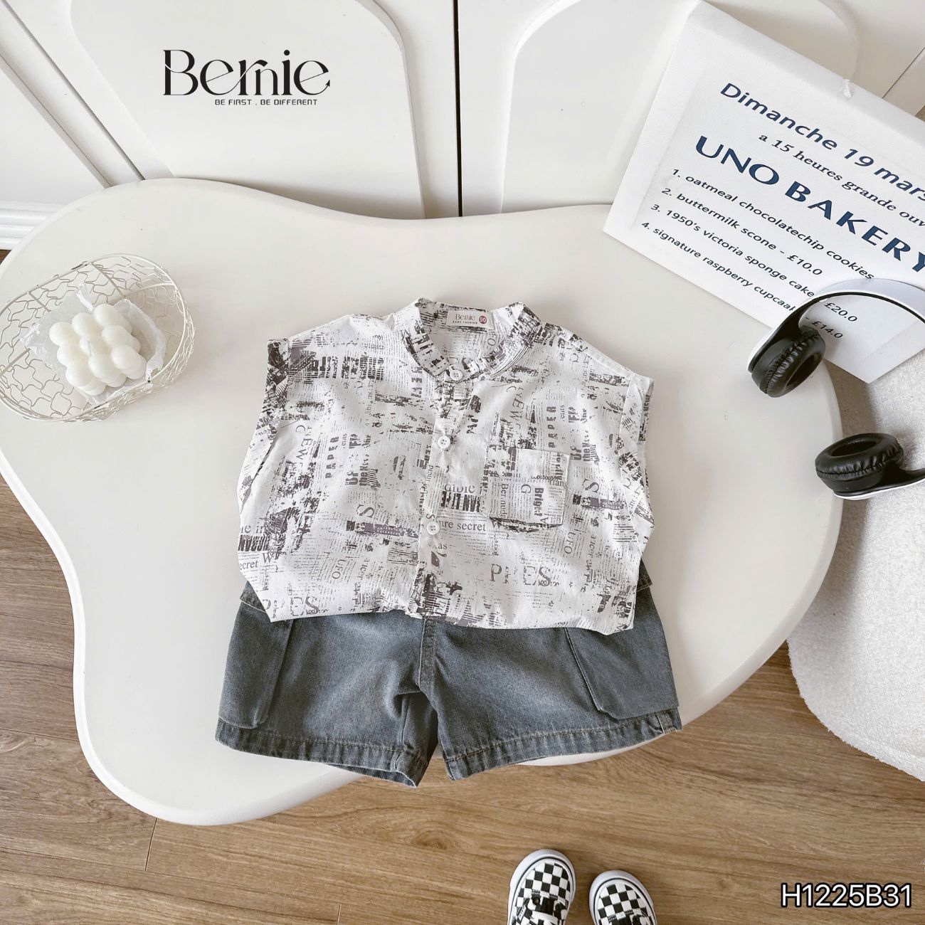 - Màu sắc: Set bộ sơ mi tanktop cho bé trai BERNIE với Tone trắng – xám – đen trung tính. Dễ phối giày dép, phù hợp nhiều hoàn cảnh và phong cách