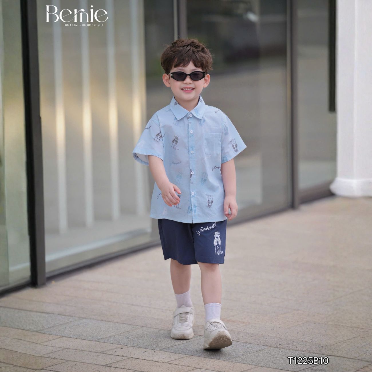 - Màu sắc: Set bộ quần áo đi chơi, set sơ mi ngắn tay cho bé trai đi chơi, đi học đi du lịch Bernie Kids với tone xanh nhẹ nhàng, dễ mặc, không kén da