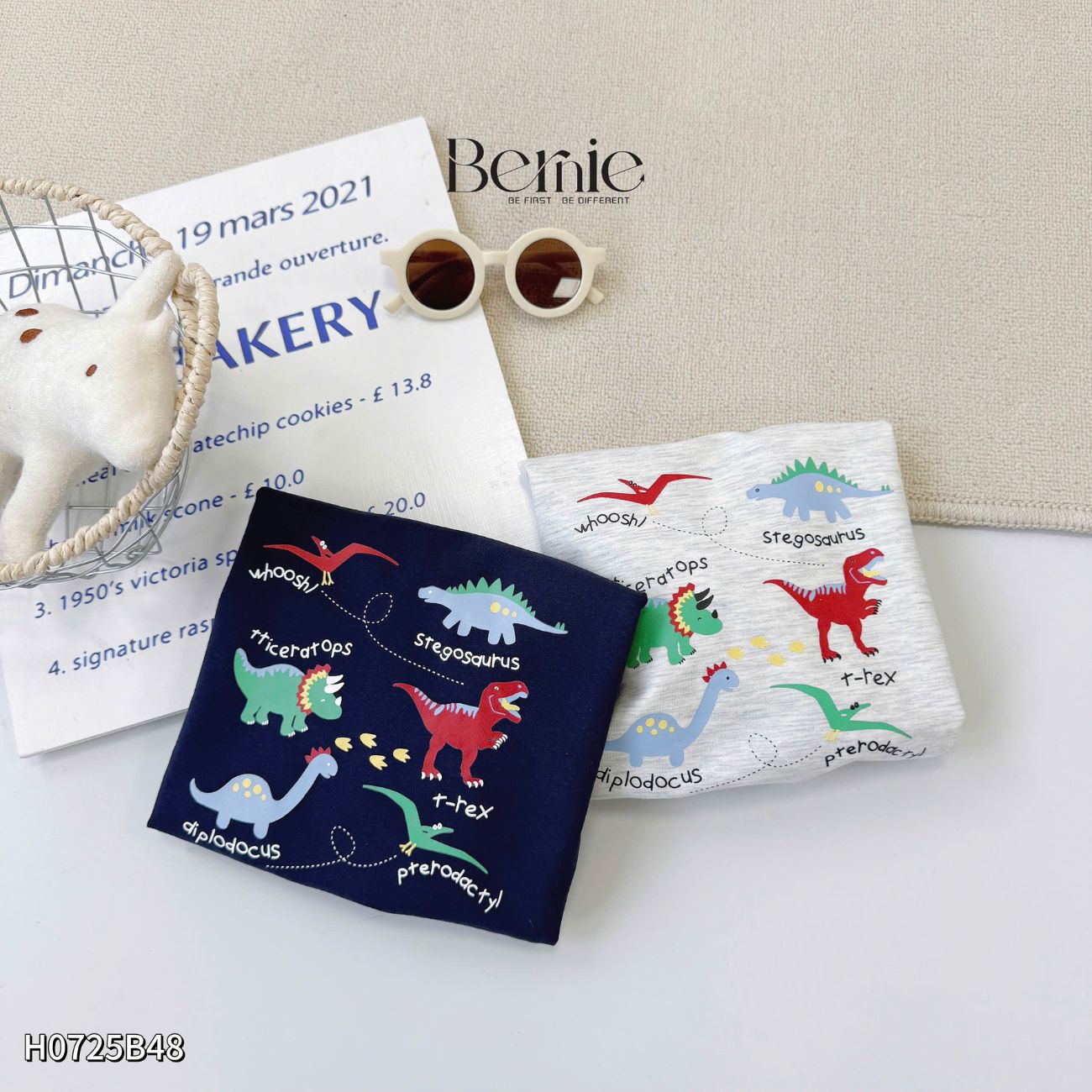 Set bộ Tiny Dino thun da cá dài tay phối màu họa tiết khủng long kèm quần dài size 9 tới 28kg BERNIE H0725B48
