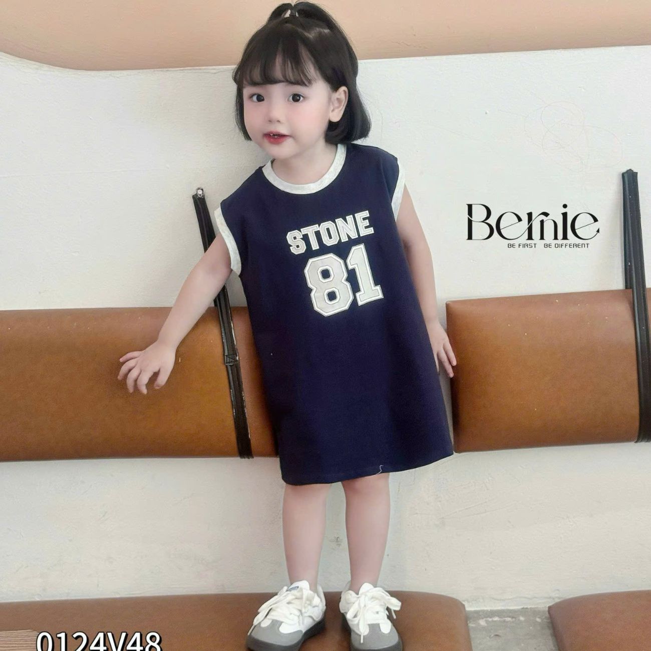 Thiết kế : Váy suông thun cotton dáng thể thao cho bé gái đi chơi đi học size 9kg tới 26kg BERNIE 0124V48 với thiết kế váy ba lỗ suông thoải mái khi mặc, bo viền cổ và tay vải phối màu chắc chắn, điểm nhấn hình in chữ và số kiểu dáng thể thao năng động, không kén dáng, bé có bụng cũng mặc vô cùng thoải mái luôn các mẹ nha