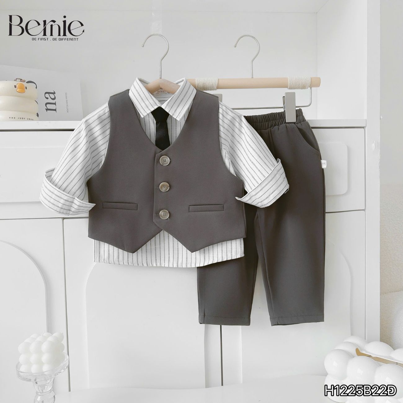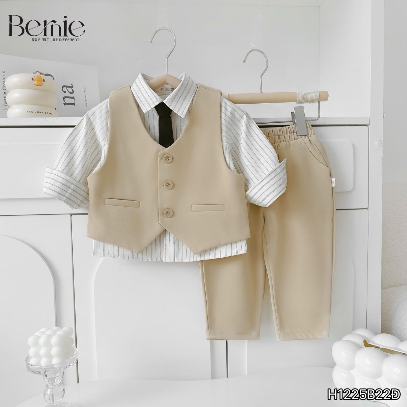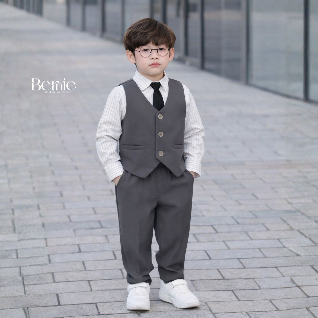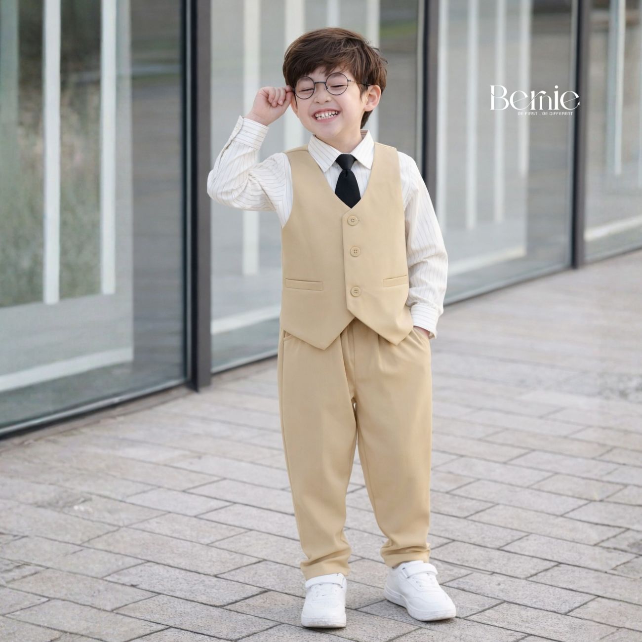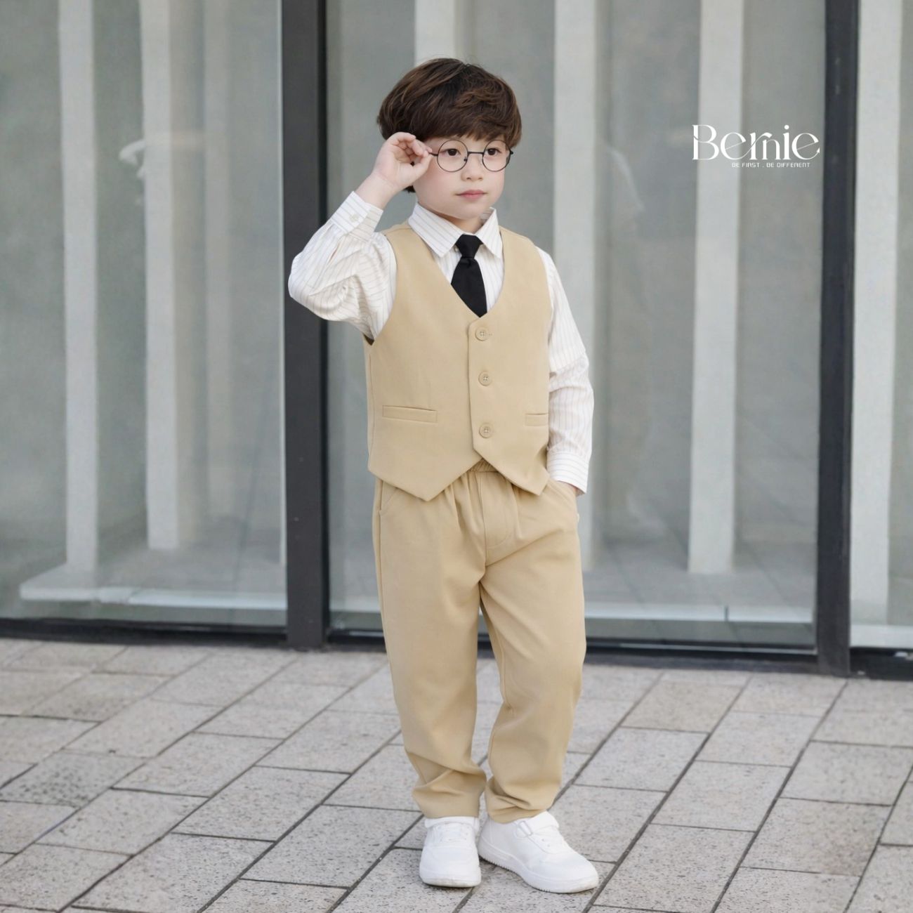 - Thiết kế: Set vest gi lê tay dài Luxe cho bé trai 4 chi tiết phong cách Hàn quốc size 8 tới 25kg BERNIE H1225B22Đ